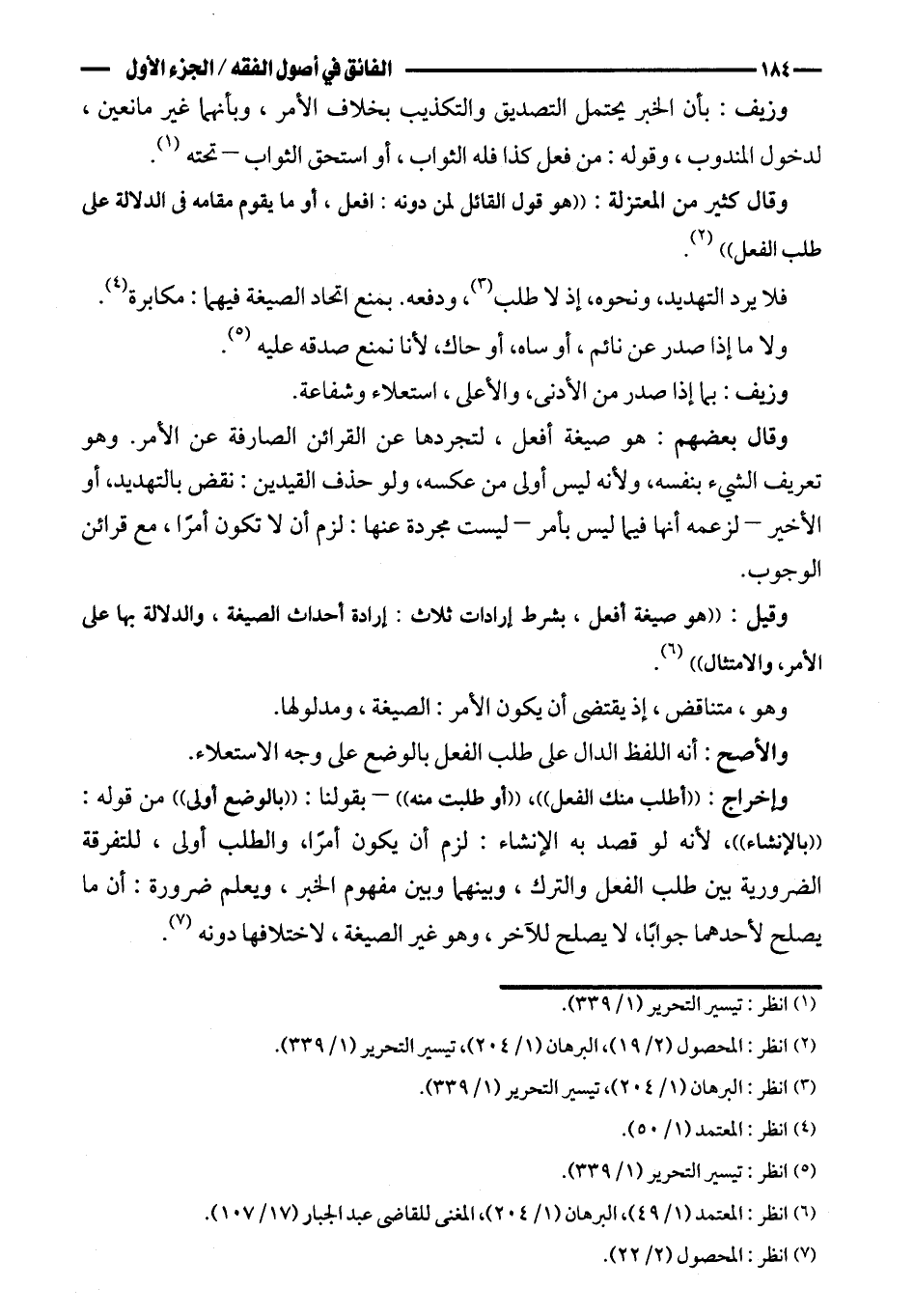 وقال كثير من المعتزلة: "هو قول القائل لمن دونه: افعل، أو ما يقوم مقامه في الدلالة على طلب الفعل".