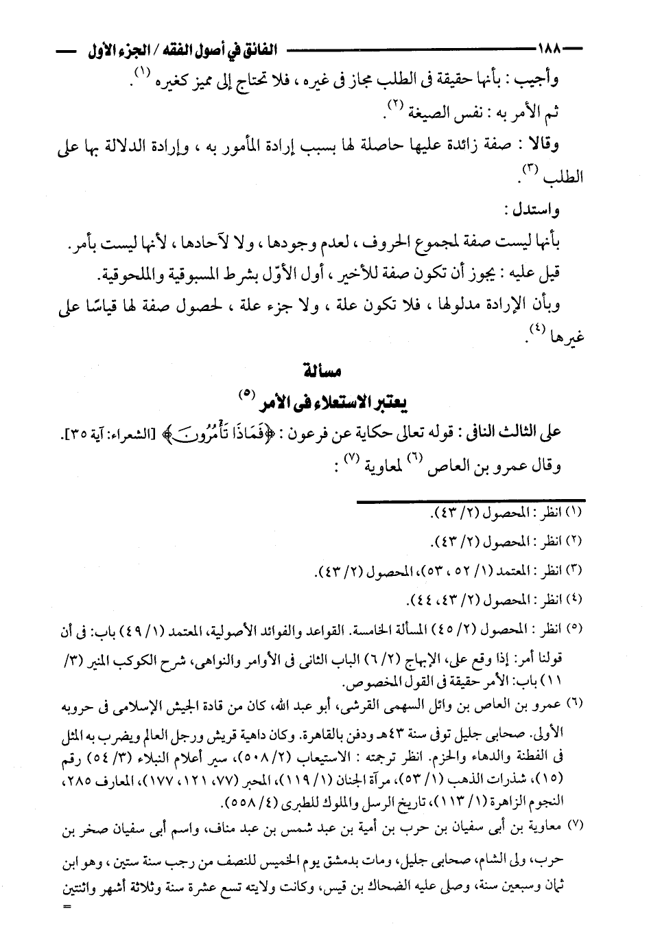 على الثالث النافي: قوله تعالى حكاية عن فرعون: {فماذا تأمرون} [الشعراء: آية ٣٥].