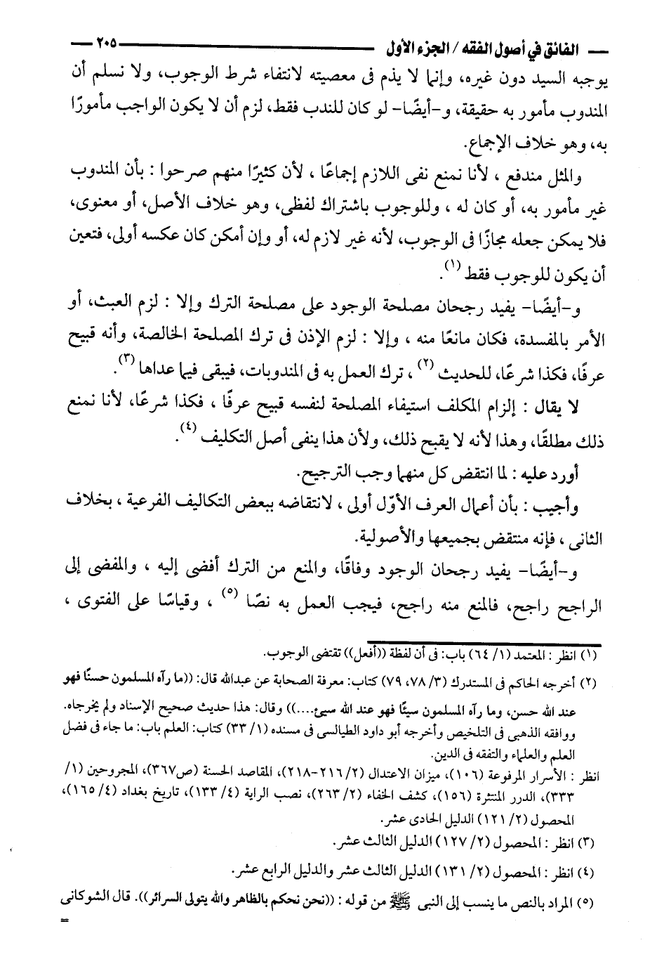 و-أيضًا- يفيد رجحان مصلحة الوجود على مصلحة الترك وإلا: لزم العبث، أو الأمر بالمفسدة، فكان مانعًا منه، وإلا: لزم الإذن في ترك المصلحة الخالصة، وأنه قبيح عرفًا، فكذا شرعًا، للحديث، ترك العمل به في المندوبات، فيبقى فيما عداها.