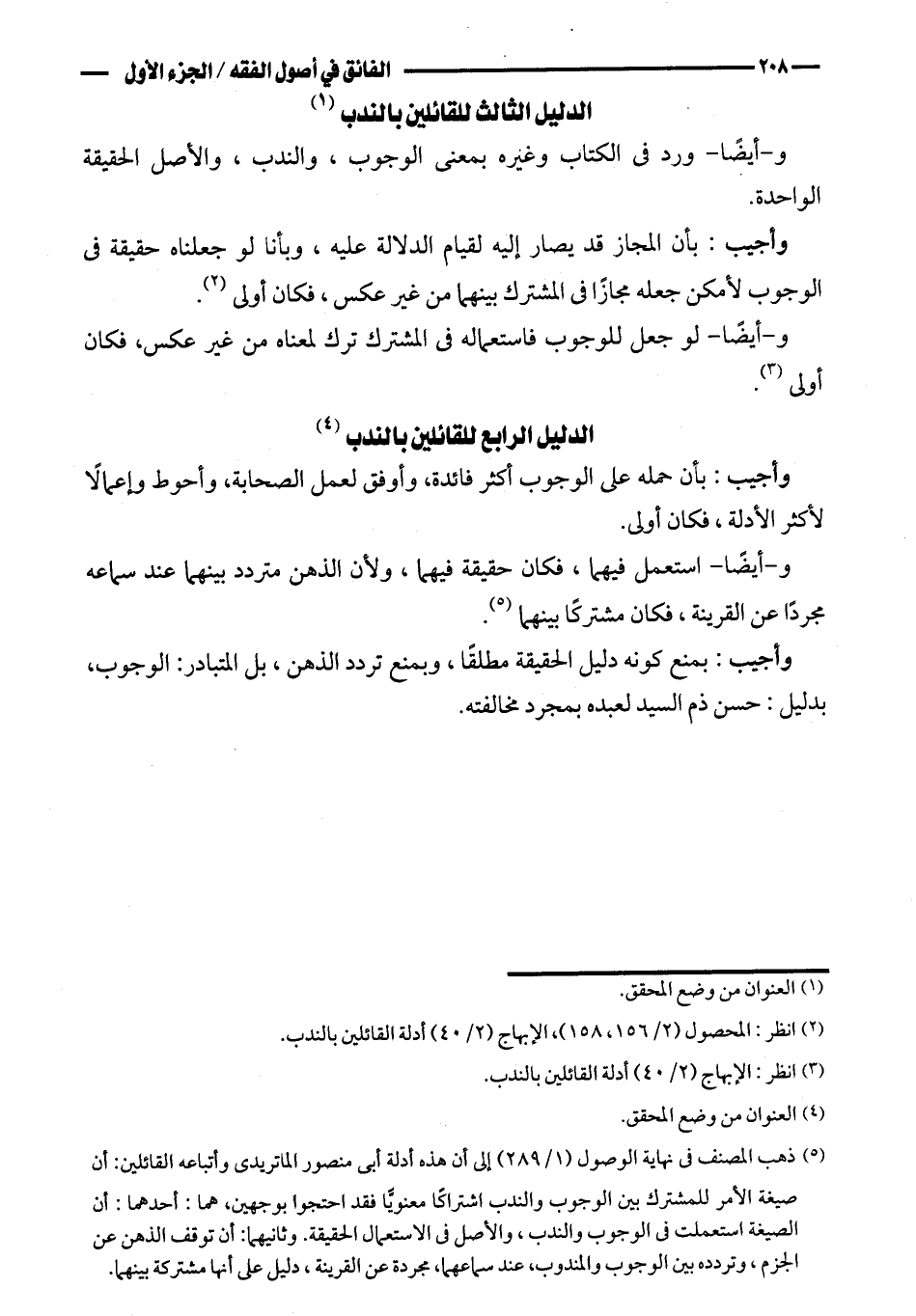 و-أيضًا- ورد في الكتاب وغيره بمعنى الوجب، والندب، والأصل الحقيقة الواحدة.