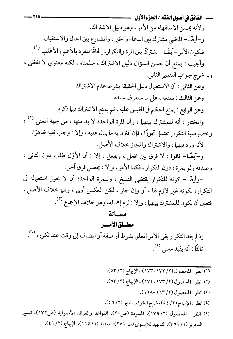 فيكون الأمر -أيضًا- مشتركًا بين المرة والتكرار، وإلحاقًا للفرد بالأعم والأغلب.