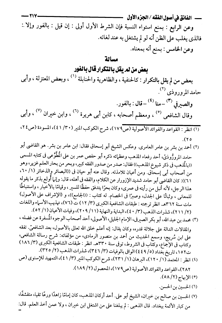 بعض من لم يقل بالتكرار قال بالفور