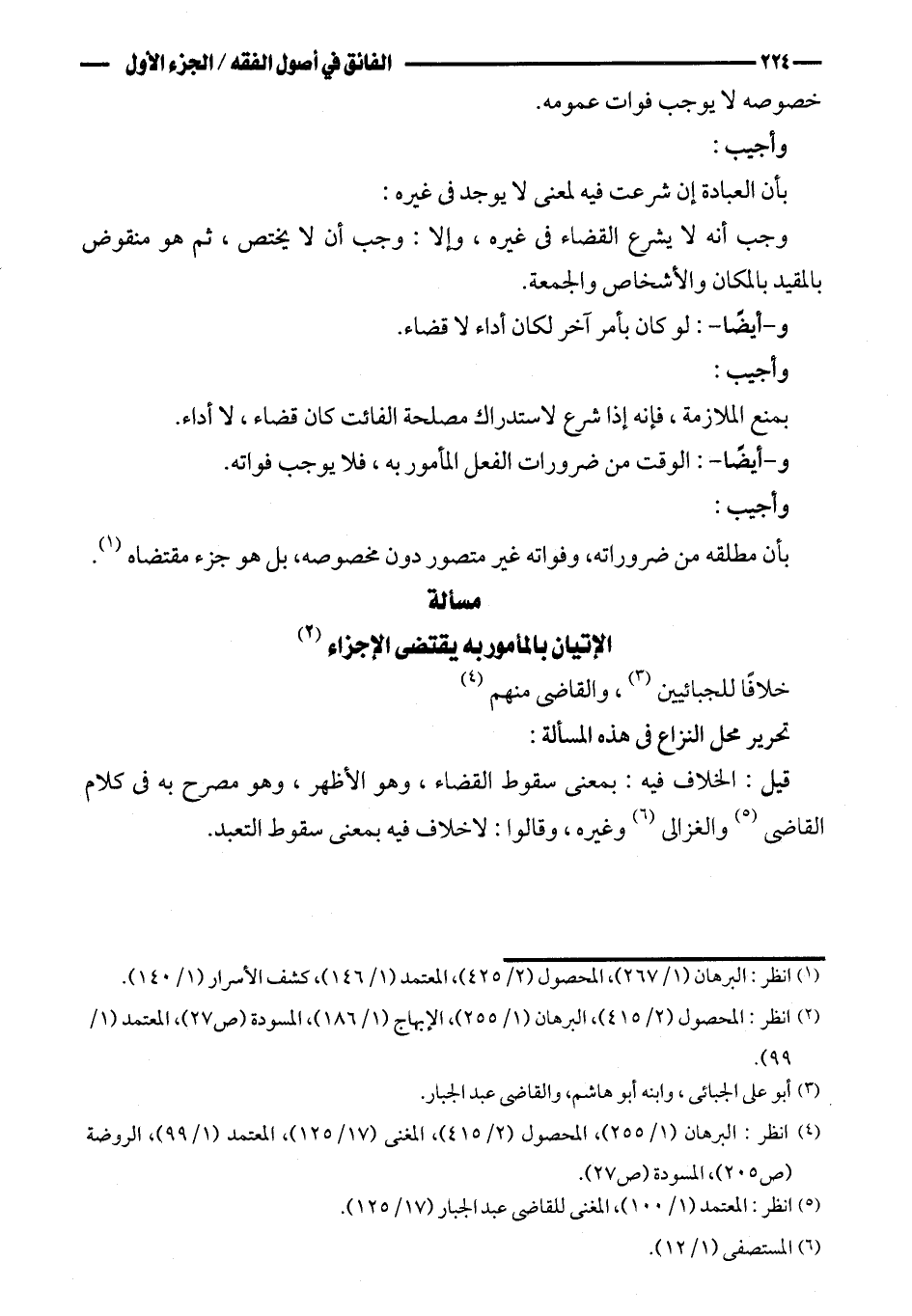و- أيضًا -: الوقت من ضرورات الفعل المأمور به، فلا يوجب فواته.