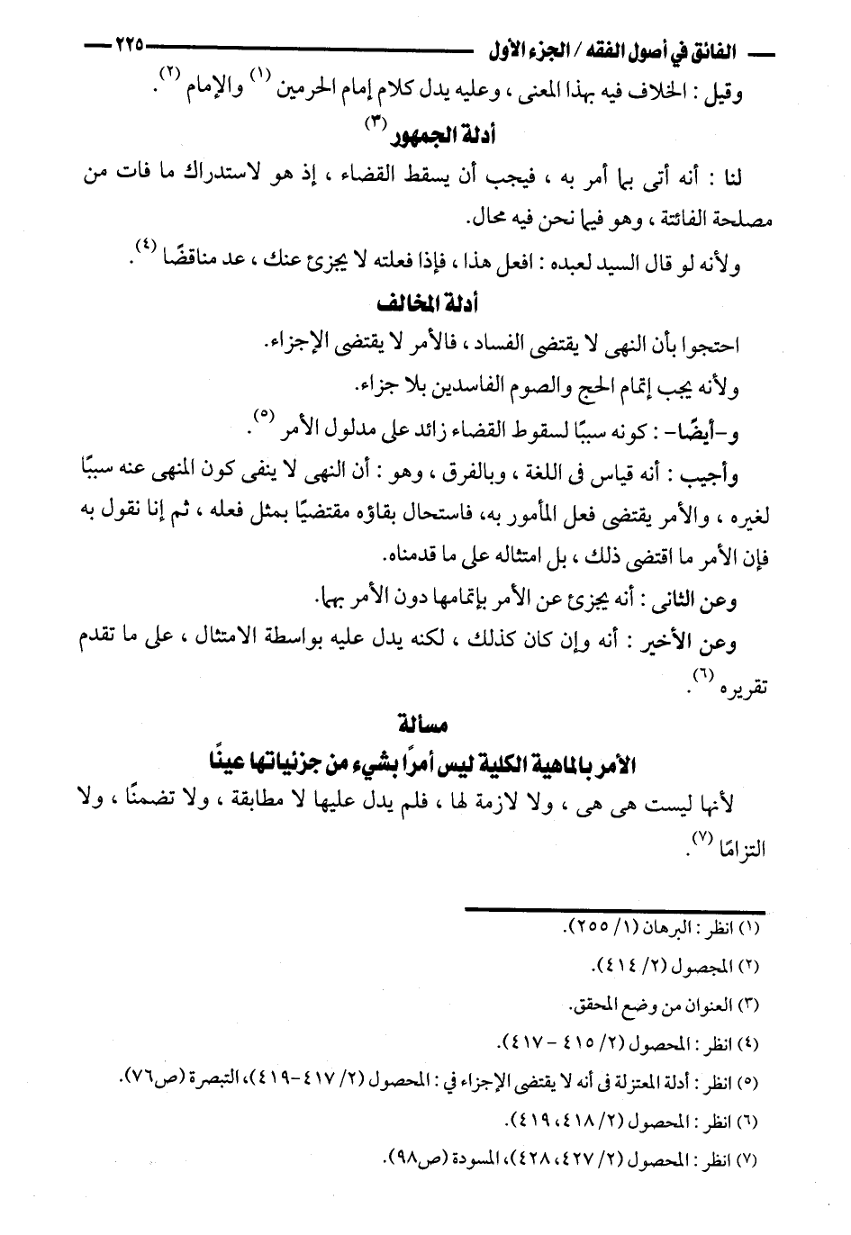 الأمر بالماهية الكلية ليس أمرًا بشيء من جزئياتها عينًا