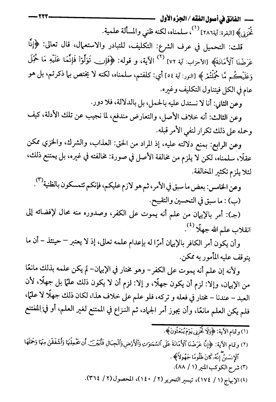 قلت: التحميل في عرف الشرع: التكليف، والتبادر والاستعمال، قال تعالى: {إنا عرضنا الأمانة} [الأحزاب: آية ٧٢] الآية، وقوله: {فإن تولوا فإنما عليه ما حمل وعليكم ما حملتم} [النور: آية ٥٤] أي: كلفتم، سلمناه، لكنه لا يختص بما ذكرتم، بل هو عام في الكل فيتناول التكليف وغيره.