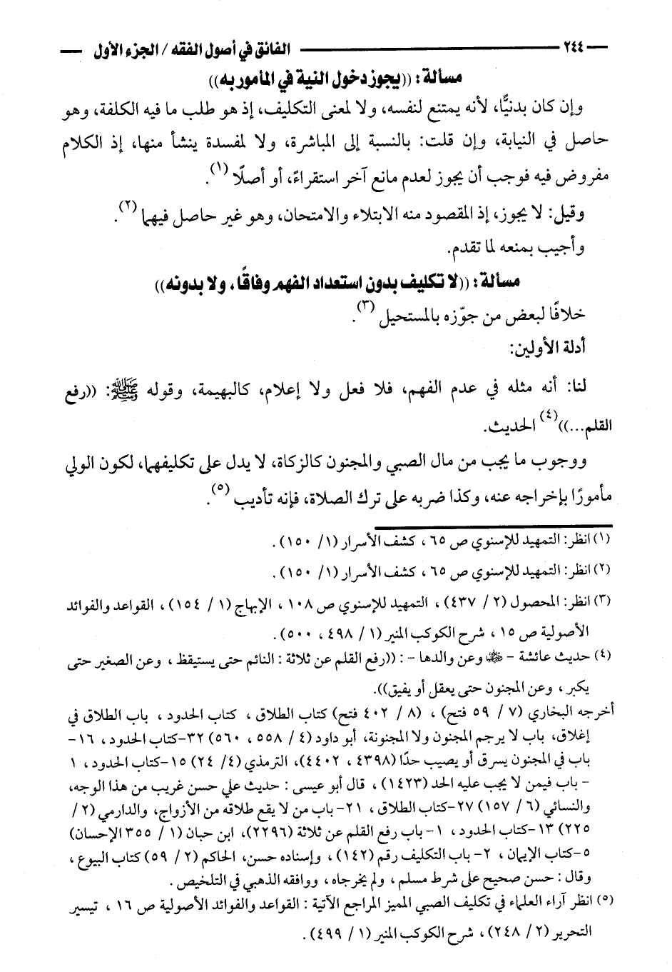 ووجوب ما يجب من مال الصبي والمجنون كالزكاة، لا يدل على تكليفهما، لكون الولي مأمورًا بإخراجه عنه، وكذا ضربه على ترك الصلاة، فإنه تأديب.