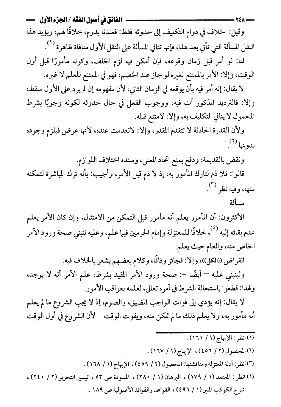 لا يقال: إنه أمر فيه بأن يوقعه في الزمان الثاني، لأن مفهومه إن لم يرد على الأول سقط، وإلا: فالترديد المذكور آت فيه، ووجوب الفعل في حال حدوثه لكونه وجوبًا بشرط المحمول لا ينافي التكليف به، وإلا: لامتنع قبله.