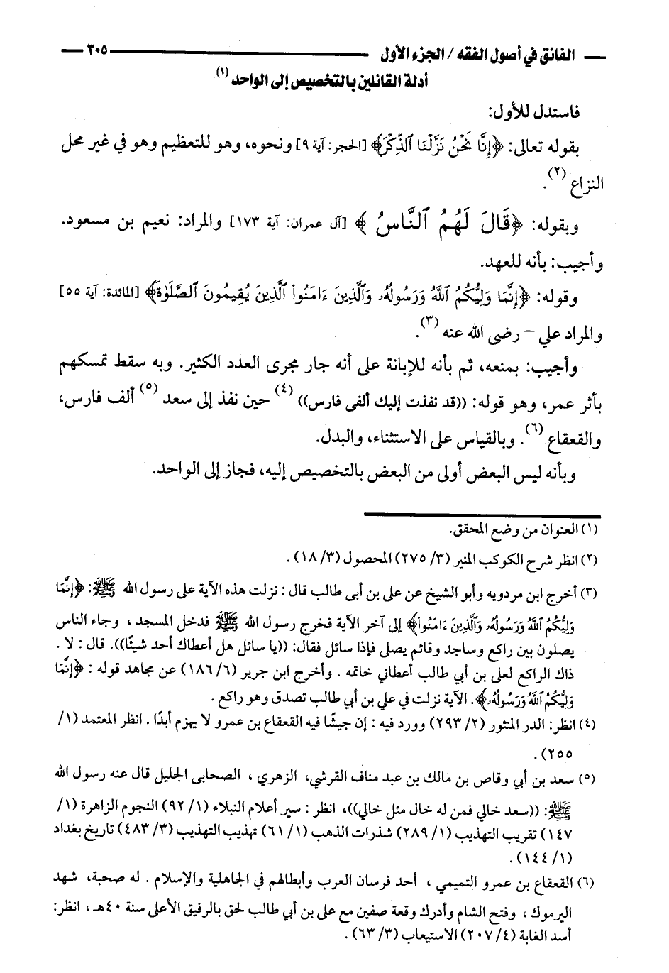 أدلة القائلين بالتخصيص إلى الواحد