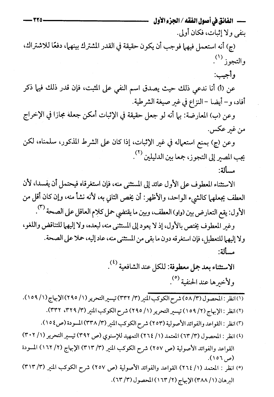 الاستثناء المعطوف على الأول عائد إلى المستثنى منه، فإن استغرقناه فيحتمل أن يفسدا، لأن العطف يجعلهما كالشيء الواحد، والأظهر: أن يخص الثاني به، لأنه منشأ منه، وإن كان أقل من الأول: يقع التعارض بين (الواو) العطف، وبين ما يقتضي حمل كلام العاقل على الصحة.