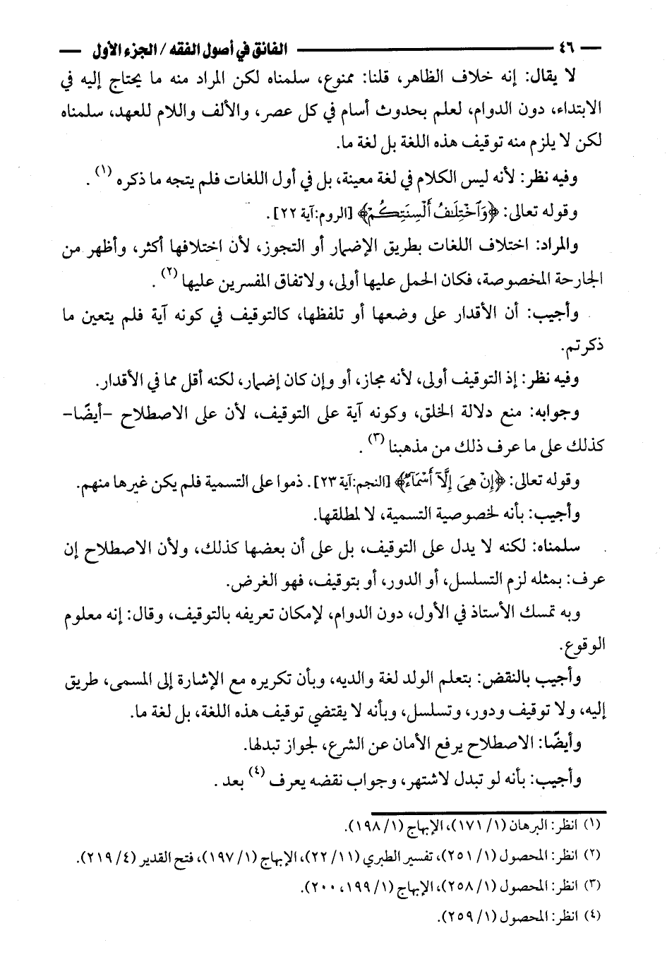 وأجيب بالنقض: بتعلم الولد لغة والديه، وبأن تكريره مع الإشارة إلى المسمى، طريق إليه، ولا توقيف ودور، وتسلسل، وبأنه لا يقتضي توقيف هذه اللغة، بل لغة ما.