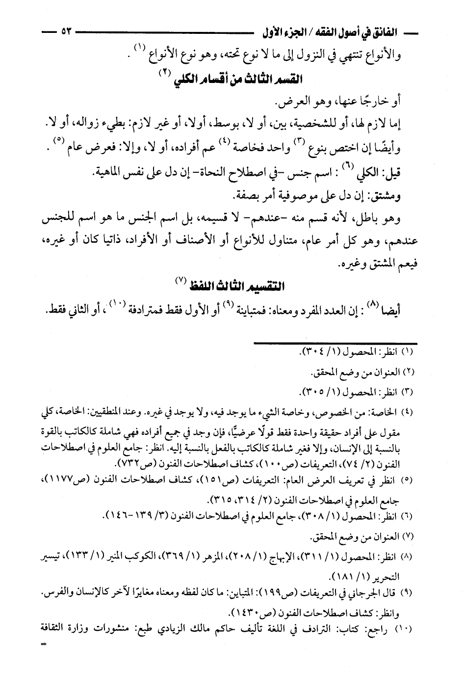 وأيضًا إن اختص بنوع واحد فخاصة عم أفراده، أو لا، وإلا: فعرض عام.