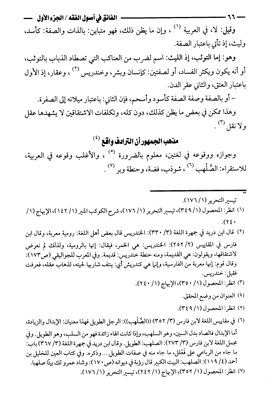 وقيل: لا، في العربية، وإن ما يظن ذلك، فهو متباين: بالذات والصفة: كأسد، وليث، إذ تأتي باعتبار الصفة.