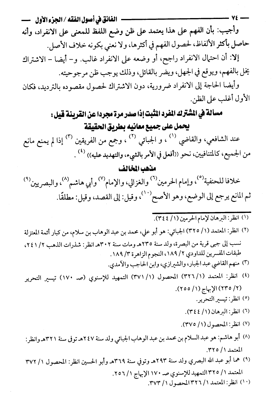 إلا: أن احتمال الانفراد راجح، أو وضعه على الانفراد غالب. و- أيضا - الاشتراك يخل بالفهم، ويوقع في الجهل، ويضر بالقائل، وذلك يوجب ظن مرجوحيته.