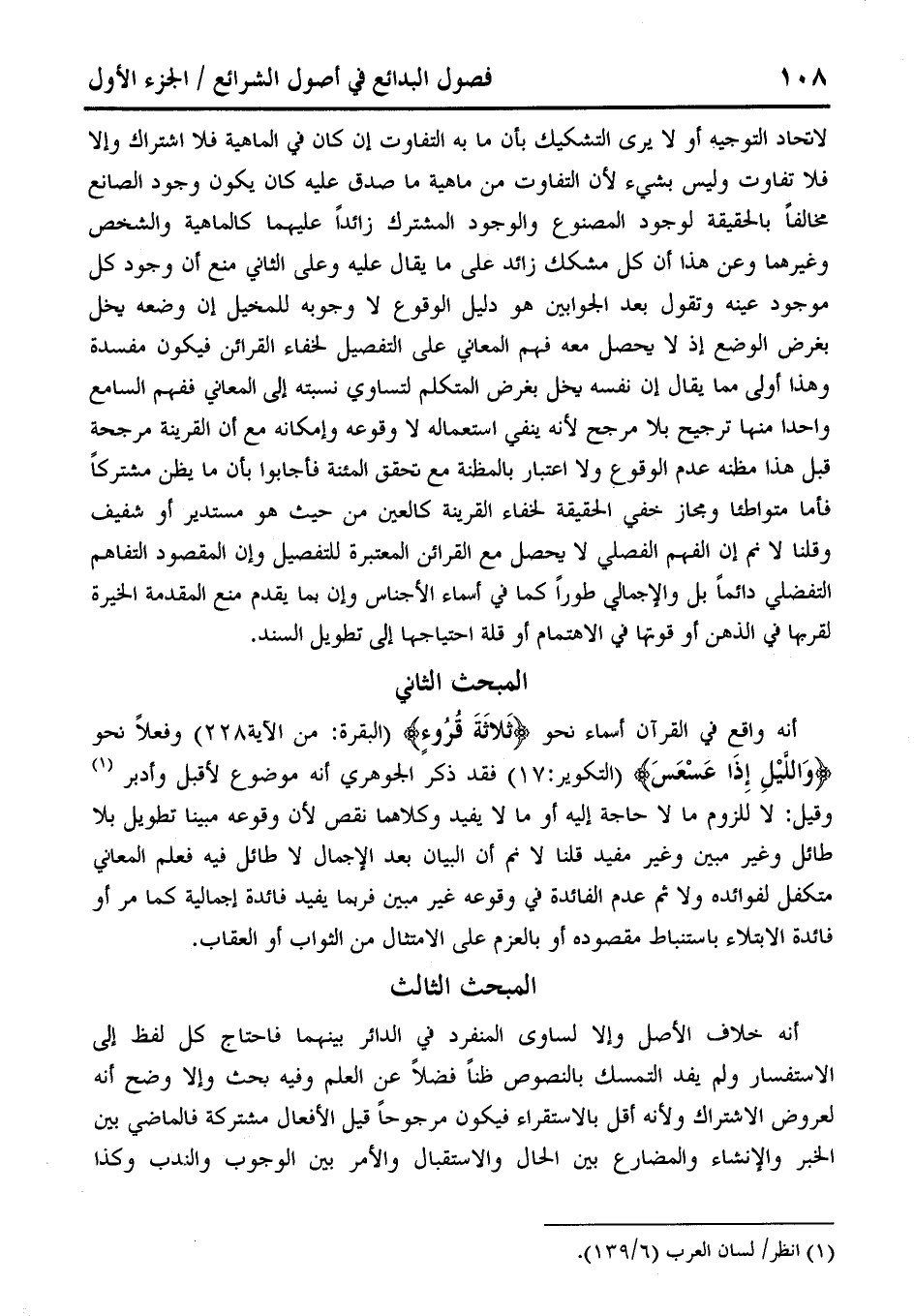 أنه واقع في القرآن أسماء نحو {ثَلاثَةَ قُرُوء} (البقرة: من الآية 228) وفعلاً نحو {وَاللْيْلِ إِذَا عَسْعَسَ} (التكوير:17) فقد ذكر الجوهري أنه موضوع لأقبل وأدبر (¬1) وقيل: لا للزوم ما لا حاجة إليه أو ما لا يفيد وكلاهما نقص لأن وقوعه مبينا تطويل بلا طائل وغير مبين وغير مفيد قلنا لا نم أن البيان بعد الإجمال لا طائل فيه فعلم المعاني متكفل لفوائده ولا ثم عدم الفائدة في وقوعه غير مبين فربما يفيد فائدة إجمالية كما مر أو فائدة الابتلاء باستنباط مقصوده أو بالعزم على الامتثال من الثواب أو العقاب.