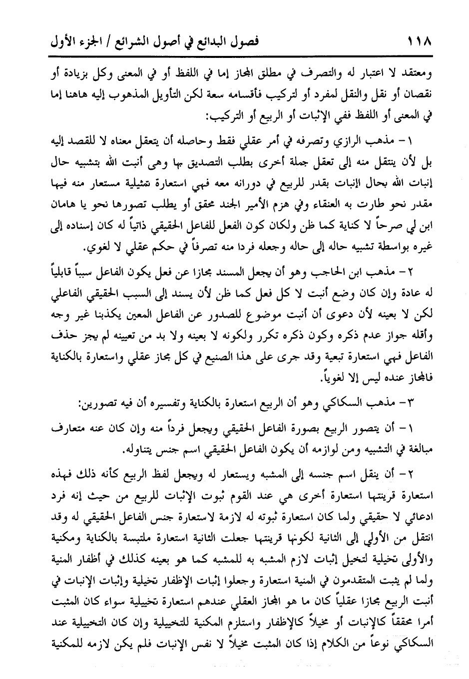 1 - مذهب الرازي وتصرفه في أمر عقلي فقط وحاصله أن يتعقل معناه لا للقصد إليه بل لأن ينتقل منه إلى تعقل جملة أخرى بطلب التصديق بها وهي أنبت الله بتشبيه حال إنبات الله بحال إنبات بقدر للربيع في دورانه معه فهي استعارة تمثيلية مستعار منه فيها مقدر نحو طارت به العنقاء وفي هزم الأمير الجند محقق أو يطلب تصورها نحو يا هامان ابن لي صرحاً لا كناية كما ظن ولكان كون الفعل للفاعل الحقيقي ذاتياً له كان إسناده إلى غيره بواسطة تشبيه حاله إلى حاله وجعله فردا منه تصرفاً في حكم عقلي لا لغوي.