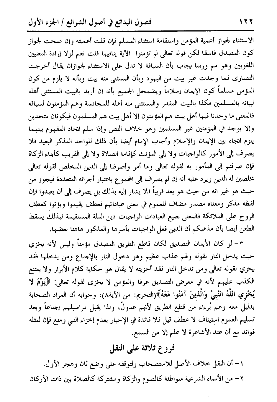 فروع ثلاثة على النقل