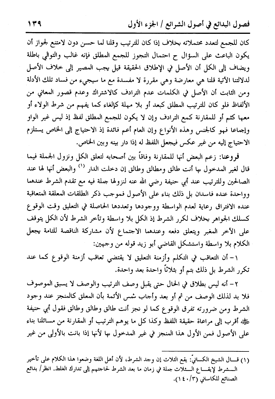 فروعنا: زعم البعض أنها للمقارنة وفاقًا بين أصحابه لتعلق الكل ونزول الجملة فيما قال لغير المدخول بها أنت طالق ومطالق وطالق إن دخلت الدار (¬1) والبعض أنها لها عند الصالحين وللترتيب عند أبي حنيفة رضي الله عنه لنزولها جملة فيه مع تقدم الشرط عندهما وواحدة عنده فاسدان بل ذلك بناء على الأصول فموجب ذكر الطلقات المعلقة المتعاقبة عنده الافتراق رعاية لعدم الواسطة ووجودها وتعددها الحاصلة فط التعليق وقت الوقوع كسلك الجواهر بخلاف لكرر الشرط إذ الكل بلا واسطة وتأخر الشرط لأن الكل يتوقف على الآخر المغبر ويتعلق دفعه وعندهما الاجتماع لأن مشاركة الناقصة للتامة يجعل الكلام بلا واسطة واستشكل القاضي أبو زيد قوله من وجهين: