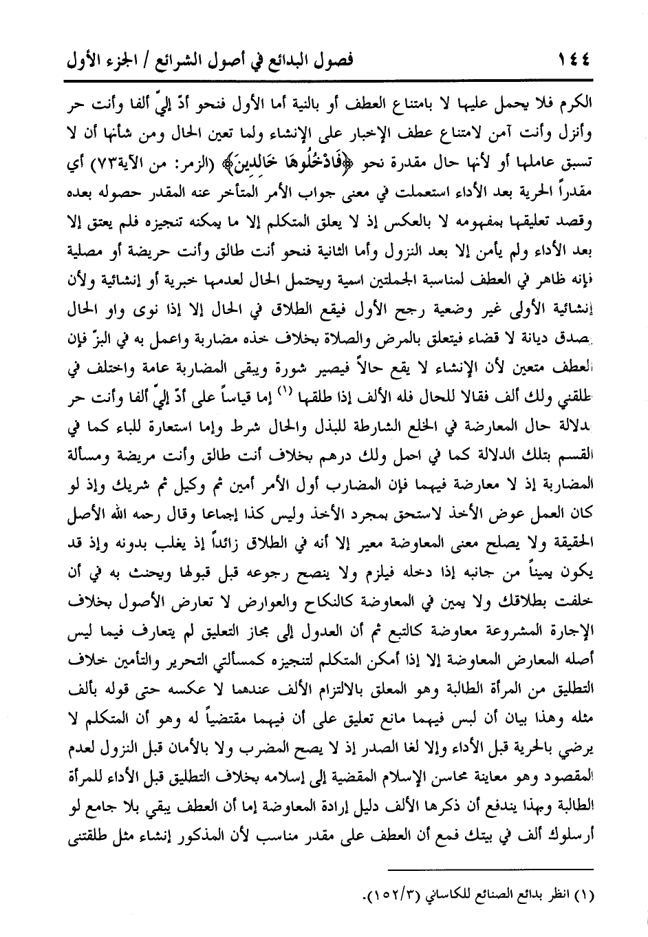(¬1) انظر بدائع الصنائع للكاساني (3/ 152).
