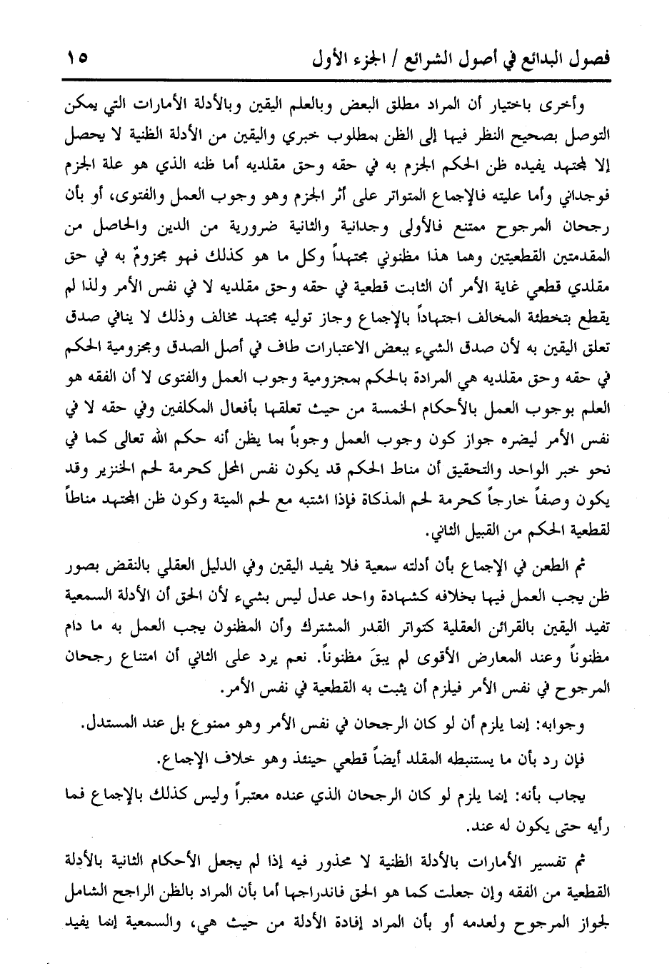 ثم الطعن في الإجماع بأن أدلته سمعية فلا يفيد اليقين وفي الدليل العقلي بالنقض بصور ظن يجب العمل فيها بخلافه كشهادة واحد عدل ليس بشيء لأن الحق أن الأدلة السمعية تفيد اليقين بالقرائن العقلية كتواتر القدر المشترك وأن المظنون يجب العمل به ما دام مطنونًا وعند المعارض الأقوى لم يبقَ مظنونًا. نعم يرد على الثاني أن امتناع رجحان المرجوح في نفس الأمر فيلزم أن يثبت به القطعية في نفس الأمر.