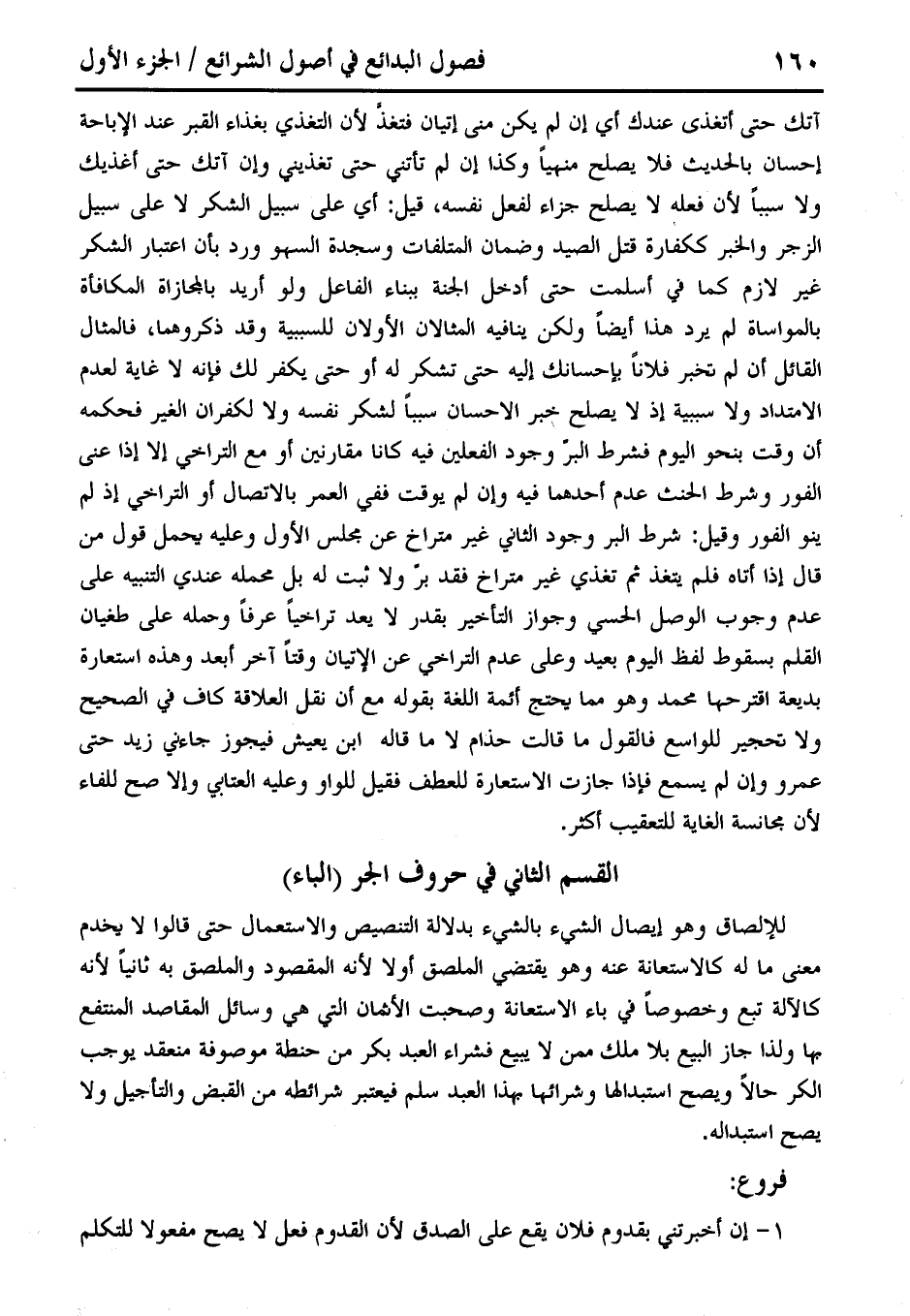 للإلصاق وهو إيصال الشيء بالشيء بدلالة التنصيص والاستعمال حتى قالوا لا يخدم معنى ما له كالاستعانة عنه وهو يقتضي الملصق أولًا لأنه المقصود والملصق به ثانيًا لأنه كالألة تبع وخصوصًا في باء الاستعانة وصحبت الأثمان التي هي وسائل المقاصد المنتفع بها ولذا جاز البيع بلا ملك ممن لا يبيع فشراء العبد بكر من حنطة موصوفة منعقد يوجب الكر حالًا ويصح استبدالها وشرائها بهذا العبد سلم فيعتبر شرائطه من القبض والتأجيل ولا يصح استبداله.