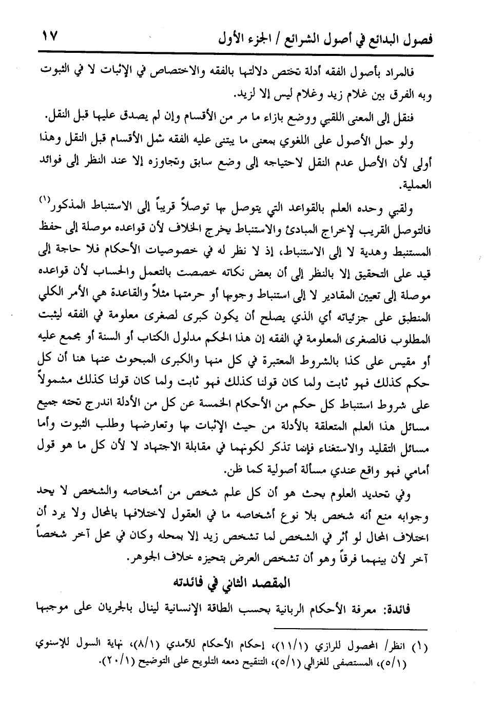 (¬1) انظر/ المحصول للرازي (1/ 11)، إحكام الأحكام للآمدي (1/ 8)، نهاية السول للإسنوي (1/ 5)، المستصفى للغزالي (1/ 5)، التنقيح دمعه التلويح على التوضيح (1/ 20).