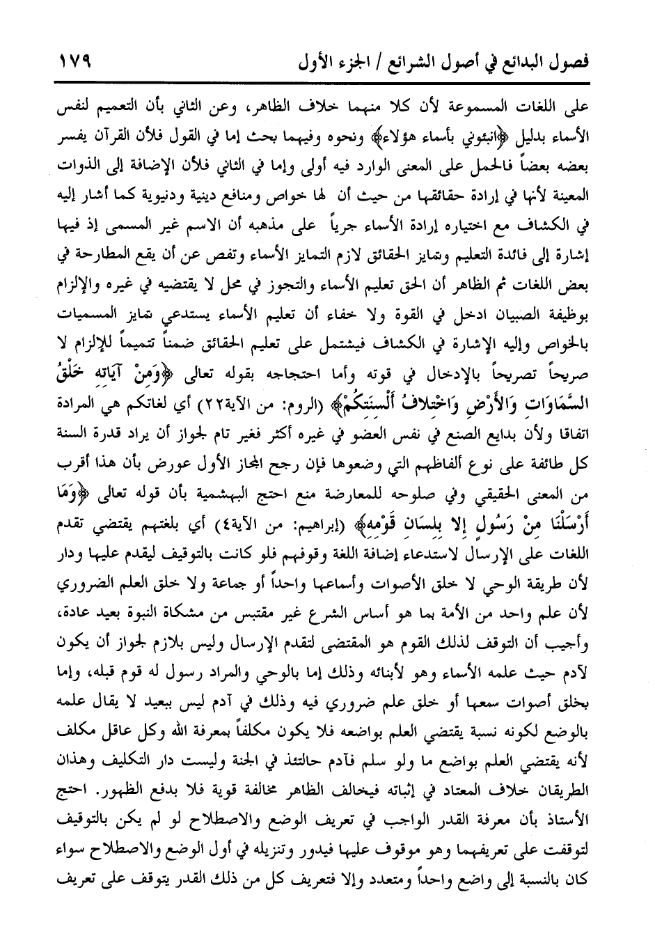 على اللغات المسموعة لأن كلا منهما خلاف الظاهر، وعن الثاني بأن التعميم لنفس الأسماء بدليل {انبئوني بأسماء هؤلاء} ونحوه وفيهما بحث إما في القول فلأن القرآن يفسر بعضه بعضًا فالحمل على المعنى الوارد فيه أولى وإما في الثاني فلأن الإضافة إلى الذوات المعينة لأنها في إرادة حقائقها من حيث أن لها خواص ومنافع دينية ودنيوية كما أشار إليه في الكشاف مع اختياره إرادة الأسماء جريًا على مذهبه أن الاسم غير المسمى إذ فيها إشارة إلى فائدة التعليم وتمايز الحقائق لازم التمايز الأسماء وتفص عن أن يقع المطارحة في بعض اللغات ثم الظاهر أن الحق تعليم الأسماء والتجوز في محل لا يقتضيه في غيره والإلزام بوظيفة الصبيان ادخل في القوة ولا خفاء أن تعليم الأسماء يستدعي تمايز المسميات بالخواص وإليه الإشارة في الكشاف فيشتمل على تعليم الحقائق ضمنًا تتميمًا للإلزام لا صريحًا تصريحًا بالإدخال في قوته وأما احتجاجه بقوله تعالى {وَمِنْ آيَاتِهِ خَلْقُ السَّمَاوَاتِ وَالْأَرْضِ وَاخْتِلَافُ أَلْسِنَتِكُمْ} (الروم: من الآية 22) أي لغاتكم هي المرادة اتفاقا ولأن بدايع الصنع في نفس العضو في غيره أكثر فغير تام لجواز أن يراد قدرة السنة كل طائفة على نوع ألفاظهم التي وضعوها فإن رجح المجاز الأول عورض بأن هذا أقرب من المعنى الحقيقي وفي صلوحه للمعارضة منع احتج البهشمية بأن قوله تعالى {وَمَا أَرْسَلْنَا مِنْ رَسُولٍ إِلا بِلِسَانِ قَوْمِهِ} (إبراهيم: من الآية 4) أي بلغتهم يقتضى تقدم اللغات على الإرسال لاستدعاء إضافة اللغة وقوفهم فلو كانت بالتوقيف ليقدم عليها ودار لأن طريقة الوحي لا خلق الأصوات وأسماعها واحدًا أو جماعة ولا خلق العلم الضروري لأن علم واحد من الأمة ما هو أساس الشرع غير مقتبس من مشكاة النبوة بعيد عادة، وأجيب أن التوقف لذلك القوم هو المقتضى لتقدم الإرسال وليس بلازم لجواز أن يكون لأدم حيث علمه الأسماء وهو لأبنائه وذلك إما بالوحي والمراد رسول له قوم قبله، وإما بخلق أصوات سمعها أو خلق علم ضروري فيه وذلك في آدم ليس ببعيد لا يقال علمه بالوضع لكونه نسبة يقتضي العلم بواضعه فلا يكون مكلفًا بمعرفة الله وكل عاقل مكلف لأنه يقتضي العلم بواضع ما ولو سلم فآدم حالتئذ في الجنة وليست دار التكليف وهذان الطريقان خلاف المعتاد في إثباته فيخالف الظاهر مخالفة قوية فلا بدفع الظهور. احتج الأستاذ بأن معرفة القدر الواجب في تعريف الوضع والاصطلاح لو لم يكن بالتوقيف لتوقفت على تعريفهما وهو موقوف عليها فيدور وتنزيله في أول الوضع والاصطلاح سواء كان بالنسبة إلى واضع واحدًا ومتعدد وإلا فتعريف كل من ذلك القدر يتوقف على تعريف