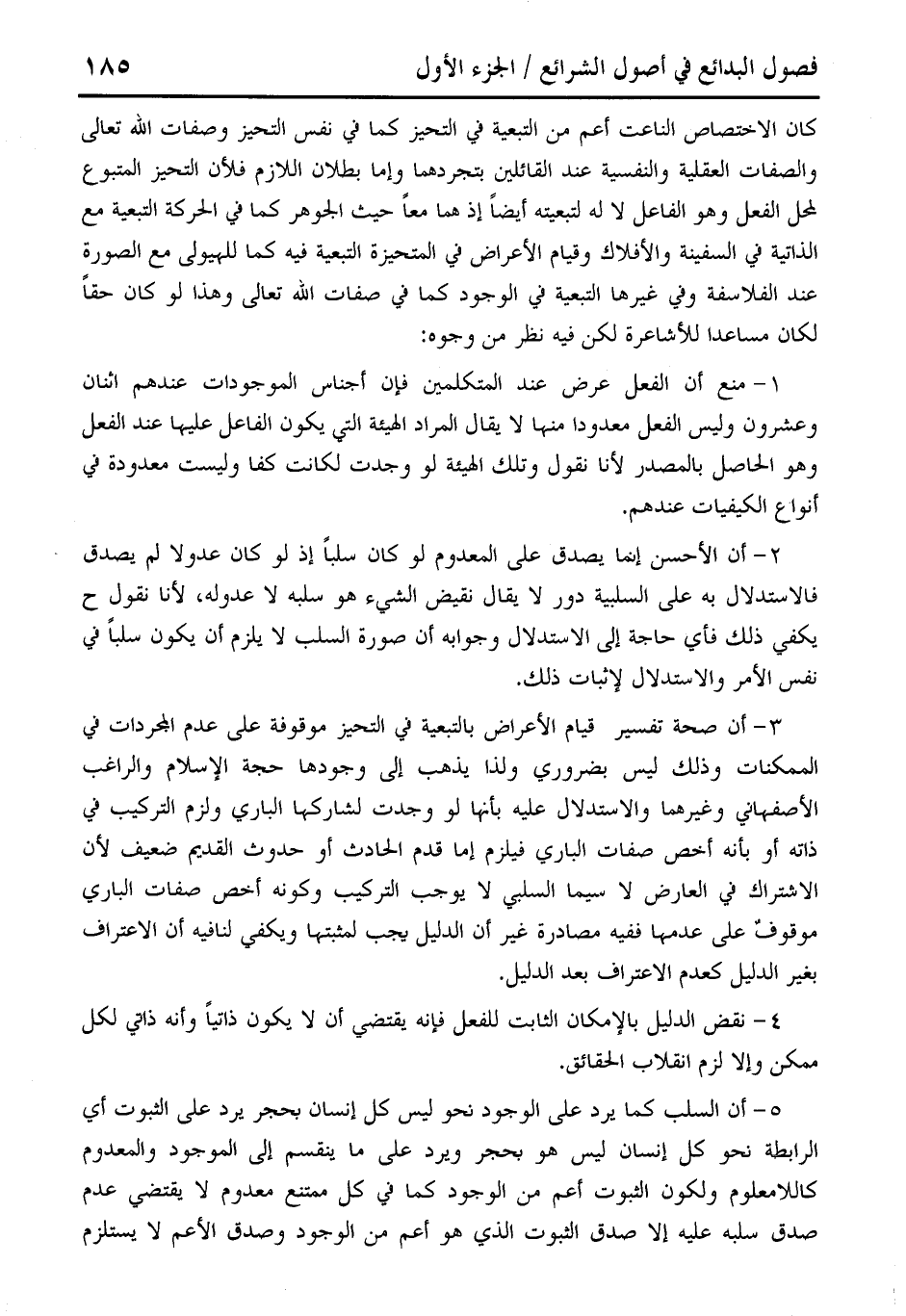 2 - أن الأحسن إنما يصدق على المعدوم لو كان سلبًا إذ لو كان عدولا لم يصدق فالاستدلال به على السلبية دور لا يقال نقيض الشيء هو سلبه لا عدوله؛ لأنا نقول ح يكفي ذلك فأي حاجة إلى الاستدلال وجوابه أن صورة السلب لا يلزم أن يكون سلبًا في نفس الأمر والاستدلال لإثبات ذلك.