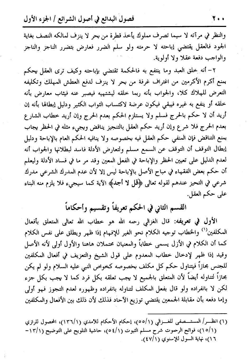 (¬1) انظر/ المستصفى للغزالي (1/ 55)، إحكام الأحكام للامدي (1/ 136)، المحصول للرازي (1/ 15)، فواتح الرحموت شرح مسلم الثبوت (1/ 54)، حاشية التلويح على التوضيع (1/ 13 - 16)، نهاية السول للإسنوي (1/ 47).