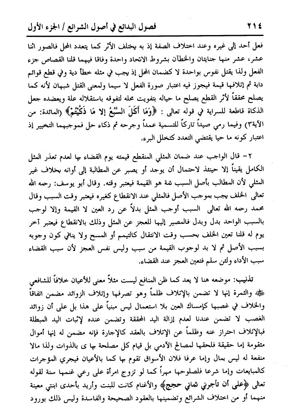 فعل أحد إلى غيره وعند اختلاف الصفة إذ به يختلف الأثر كما يتعدد المحل فالصور اثنا عشر، عشر منها جنايتان والخطآن بشروط الاتحاد واحدة وفاقا فيهما قلنا القصاص جزء الفعل ولذا يقتل نفوس بواحدة لا كضمان المحل إذ يجب في مثله خطأ دية وفي قطع قوائم دابة ثم إئلافها قيمة فيجوز فيه اعتبار صورة الفعل لا سيما ولمعنى القتل شبهان لأنه كما يصلح محققًا لأثر القطح يصلح ما حياله بتفويت محله لتفوقه باستقلاله علة ويعضده جعل الذكاة قاطعة للسراية في قوله تعالى: {وَمَا أَكَلَ السَّبُعُ إِلَّا مَا ذَكَّيْتُمْ} (المائدة: من الآية 3) وفيما رمي صيدًا تاركًا للتسمية عمدًا وجرحه ثم ذكاء حل فموجبهما التخيير إذ اعتبار كونه ما حيا يقتضي التعدد كتخلل البرء.