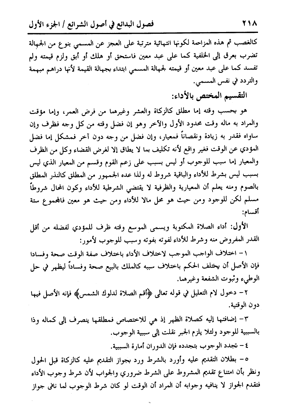 1 - اختلاف الواجب الموجب لاختلاف الأداء باختلاف صفة الوقت صحة وفسادا فإن الأصل أن يختلف الحكم باختلاف سببه كالملك بالبيع صحة وفسادًا ليظهر في حل الوطئ وثبوت الشفعة وغيرهما.