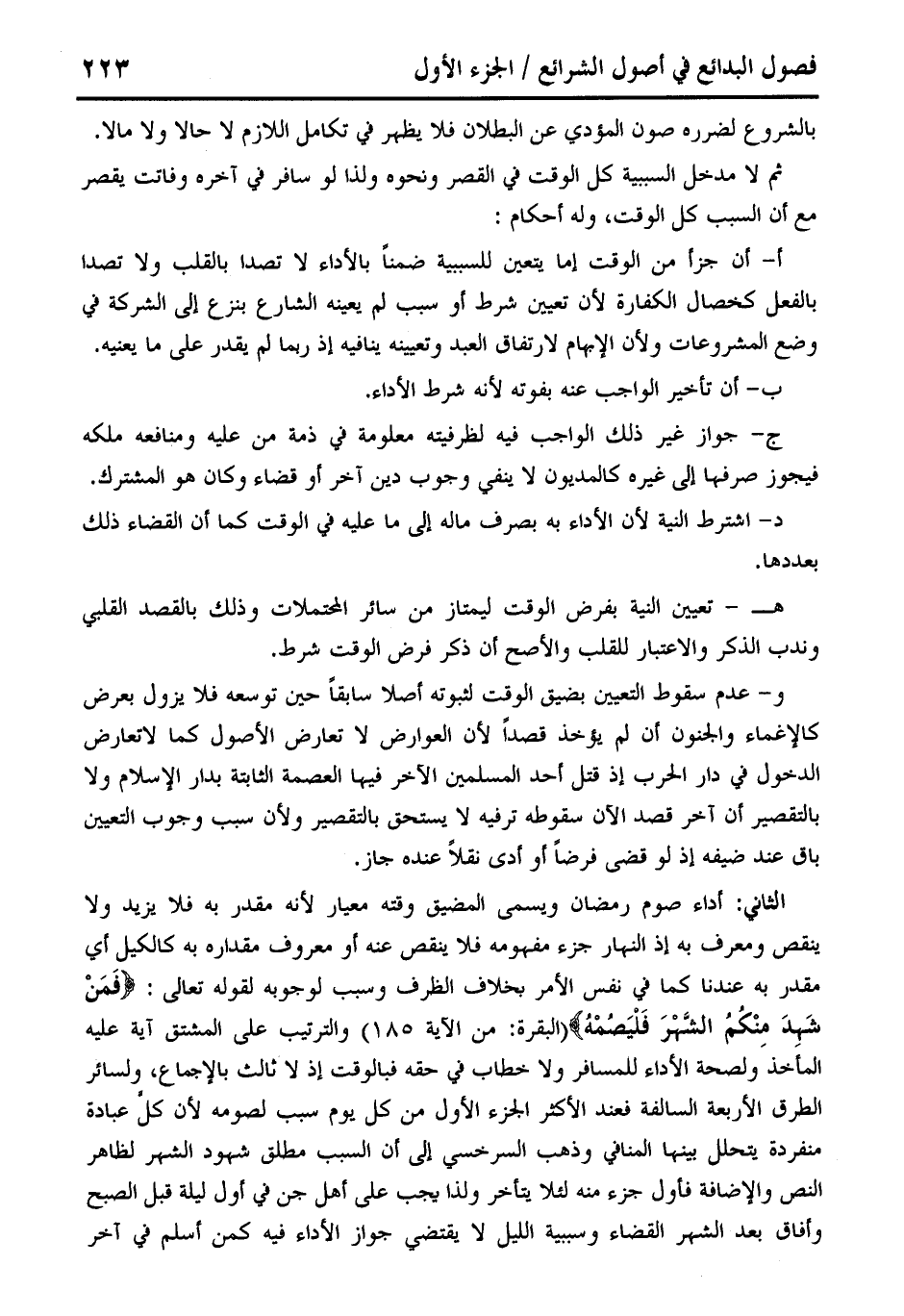 ثم لا مدخل السببية كل الوقت في القصر ونحوه ولذا لو سافر في آخره وفاتت يقصر مع أن السبب كل الوقت، وله أحكام: