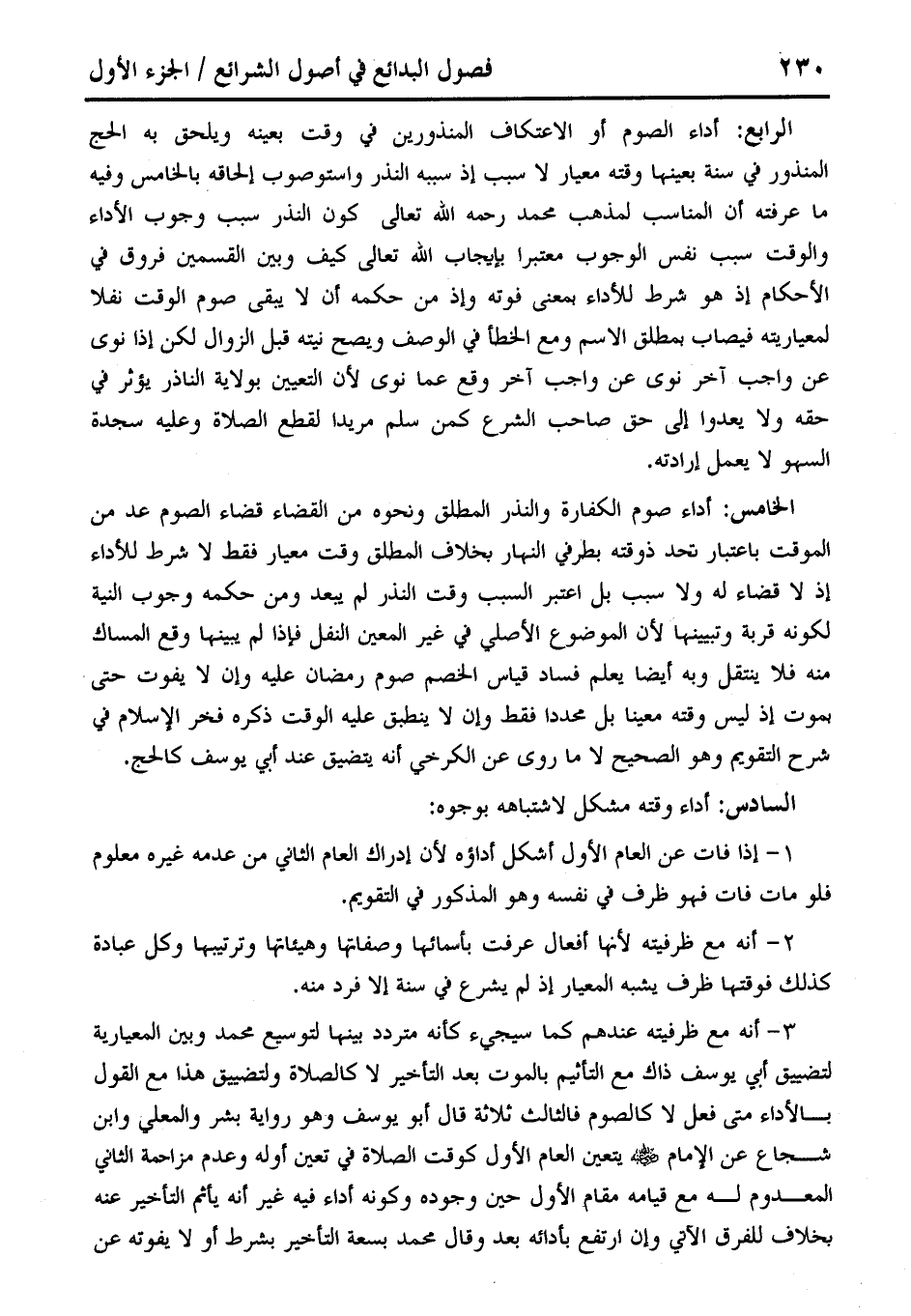 3 - أنه مع ظرفيته عندهم كما سيجيء انه متردد بينها لتوسيع محمَّد وبين المعيارية لتضييق أبي يوسف ذاك مع التاثيم بالموت بعد التأخير لا كالصلاة ولتضييق هذا مع القول بالأداء متى فعل لا كالصوم فالثالث ثلاثة قال أبو يوسف وهو رواية بشر والمعلى وابن شجاع عن الإمام - رضي الله عنه - يتعين العام الأول كوقت الصلاة في تعين أوله وعدم مزاحمة الثاني المعدوم له مع قيامه مقام الأول حين وجوده وكونه أداء فيه غير أنه يأثم التأخير عنه بخلاف للفرق إلآتي وإن ارتفع بأدائه بعد وقال محمَّد بسعة التأخير بشرط أو لا يفوته عن