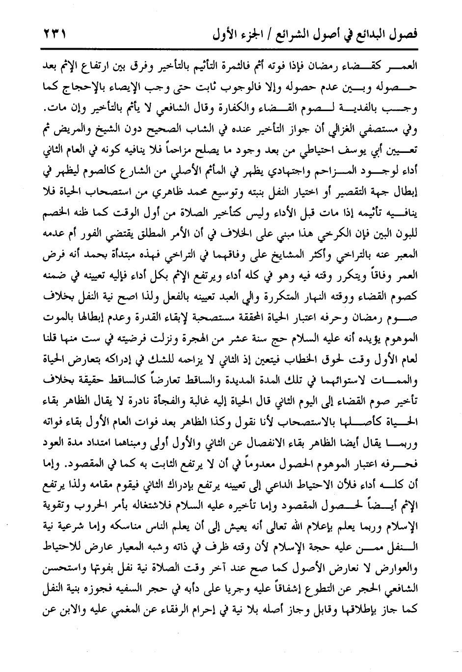 وفي مستصفي الغزالي أن جواز التأخير عنده في الشاب الصحيح دون الشيخ والمريض ثم تعيين أبي يوسف احتياطي من بعد وجود ما يصلح مزاحمًا فلا ينافيه كونه في العام الثاني أداء لوجود المزاحم واجتهادي يظهر في المأثم الأصلي من الشارع كالصوم ليظهر في ابطال جهة التقصير أو اختيار النفل بنبته وتوسيع محمَّد ظاهري من استصحاب الحياة فلا ينافيه تأثيمه إذا مات قبل الأداء وليس كتأخير الصلاة من أول الوقت كما ظنه الخصم للبون البين فإن الكرخي هذا مبني على الخلاف في أن الأمر المطلق يقتض الفور أم عدمه المعبر عنه بالتراخي وأكثر المشايخ على وفاقهما في التراخي فهذه مبتدأة بحمد أنه فرض العمر وفاقًا ويتكرر وقته فيه وهو في كله أداء ويرتفع الإثم بكل أداء فإليه تعيينه في ضمنه كصوم القضاء ووقته النهار المتكررة وإلى العبد تعيينه بالفعل ولذا اصح نية النفل بخلاف صوم رمضان وحرفه اعتبار الحياة المحققة مستصحبة لإبقاء القدرة وعدم إبطالها بالموت الموهوم يؤيده أنه عليه السلام حج سنة عشر من الهجرة ونزلت فرضيته في ست منها قلنا لعام الأول وقت لحوق الخطاب فيتعين إذ الثاني لا يزاحمه للشك في إدراكه بتعارض الحياة والممات لاستوائهما في تلك المدة المديدة والساقط تعارضًا كالساقط حقيقة بخلاف تأخير صوم القضاء إلى اليوم الثاني قال الحياة إليه غالبة والفجأة نادرة لا يقال الظاهر بقاء الحياة كأصلها بالاستصحاب لأنا نقول وكذا الظاهر بعد ذوات العام الأول بقاء فواته وربما يقال أيضًا الظاهر بقاء الانفصال عن الثاني والأول أولى ومبناهما امتداد مدة العود فحرفه اعتبار الموهوم الحصول معدومًا في أن لا يرتفع الثابت به كما في المقصود. وإما أن كله أداء فلأن الاحتياط الداعي إلى تعيينه يرتفع بإدراك الثاني فيقوم مقامه ولذا يرتفع الاثم أيضًا لحصول المقصود وإما تأخيره عليه السلام فلاشتغاله بأمر الحروب وتقوية الإِسلام وربما يعلم بإعلام الله تعالى أنه يعيش إلى أن يعلم الناس مناسكه وإما شرعية نية النفل ممن عليه حجة الإِسلام لأن وقته ظرف في ذاته وشبه المعيار عارض للاحتياط والعوارض لا نعارض الأصول كما صح عند آخر وقت الصلاة نية نفل بفوتها واستحسن الشافعى الحجر عن التطوع اشفاقًا عليه وجريا على دأبه في حجر السفيه فجوزه بنية النفل كما جاز بإطلاقها وقابل وجاز أصله بلا نية في إحرام الرفقاء عن المغمي عليه والابن عن