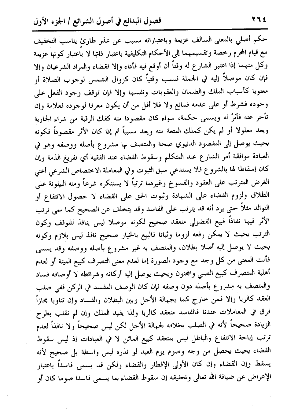 حكم أصلي بالمعنى السالف عزيمة وباعتباراته مسبب عن عذر طارئٍ يناسب التخفيف مع قيام المحرم رخصة وتقسيمهما إلى الأحكام التكليفية باعتبار ذاتها لا باعتبار كونها عزيمة وكل منهما إذا اعتبر الشارع له وقتًا أن أوقع فيه فأداء وإلا فقضاء والمراد الشرعيان وإلا فإن كان موصلًا إليه في الجملة فسبب وقتيًا كان كزوال الشمس لوجوب الصلاة أو معنويا كاسباب الملك والضمان والعقوبات ونفسها وإلا فإن توقف وجود الفعل على وجوده فشرط أو على عدمه فمانع ولا فلا أقل من أن يكون معرفا لوجوده فعلامة وإن تأخر عنه فأثرٌ له ويسمى حكمة، سواء كان مقصودا منه كفك الرقبة من شراء الجارية ويعد معلولا أو لم يكن كملك المتعة منه ويعد مسببًا ثم إذا كان الأثر مقصودًا فكونه بحيث يوصل إلى المقصود الدنيوي صحة والمتصف بها مشروع بأصله ووصفه وهو في العبادة موافقة أمر الشارع عند المتكلم وسقوط القضاء عند الفقيه أي تفريجِ الذمة وإن كان إسقاطا لها بالشروع فلا يستدعي سبق الثبوت وفي المعاملة الاختصاص الشرعي أعني الغرض المترتب على العقود والفسوخ وغيرهما ترتبًا لا يستنكره شرعًا ومنه البينونة على الطلاق ولزوم القضاء على الشهادة وثبوت الحق على القضاء لا حصول الانتفاع أو التوالد مثلًا حتى يرد أنه قد يترتب على الفاسد وقد يتخلف عن الصحيح كما سمي ترتب الأثر فيها نفاذًا فبيع الفضولي منعقد صحيح لكونه موصلًا ليس بنافذ للتوقف وكون الترتيب بحيث لا يمكن رفعه لزوما وثباتا فالبيع بالخيار صحيح نافذ ليس بلازم وكونه بحيث لا يوصل إليه أصلًا بطلان، والمتصف به غير مشروع بأصله ووصفه وقد يسمى فأنت المعنى من كل وجد مع وجود الصورة إما لعدم معنى التصرف كبيع الميتة أو لعدم أهلية المتصرف كبيع الصبي والمجنون وبحيث يوصل إليه أركانه وشرائطه لا أوصافه فساد والمتصف به مشروع بأصله دون وصفه فإن كان الوصف المفسد في الركن ففى صلب العقد كالربا وإلا فمن خارج كما بجهالة الأجل وبين البطلان والفساد وإن تناوبا مجازًا فرق في المعاملات عندنا فالفاسد منعقد كالربا ولذا يفيد الملك وإن لم نقلب بطرح الزيادة صحيحًا لأنه في الصلب بخلافه لجمالة الأجل لكن ليس صحيحًا ولا نافذًا لعدم ترتب إباحة الانتفاع والباطل ليس بمنعقد كبيع المائن لا في العبادات إذ ليس سقوط القضاء بحيث يحصل من وجه وصوم يوم العيد لو نذره ليس واسطة بل صحيح لأنه يسقط وإن القضاء وإن كان الأولى الإفطار والقضاء ولكن قد يسمى فاسدًا باعتبار الإعراض عن ضيافة الله تعالى وتحقيقه إن سقوط القضاء بما يسمى فاسدا صومًا كان أو