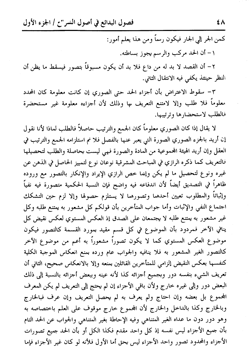 3 - سقوط الاعتراض بأن أجزاء الحد حتى الصوري إن كانت معلومة كان المحدد معلومًا فلا طلب وإلا لامتنع التعريف بها وذلك لأن أجزاءه معلومة غير مستحضرة فالطلب لاستحضارها وترتيبها.