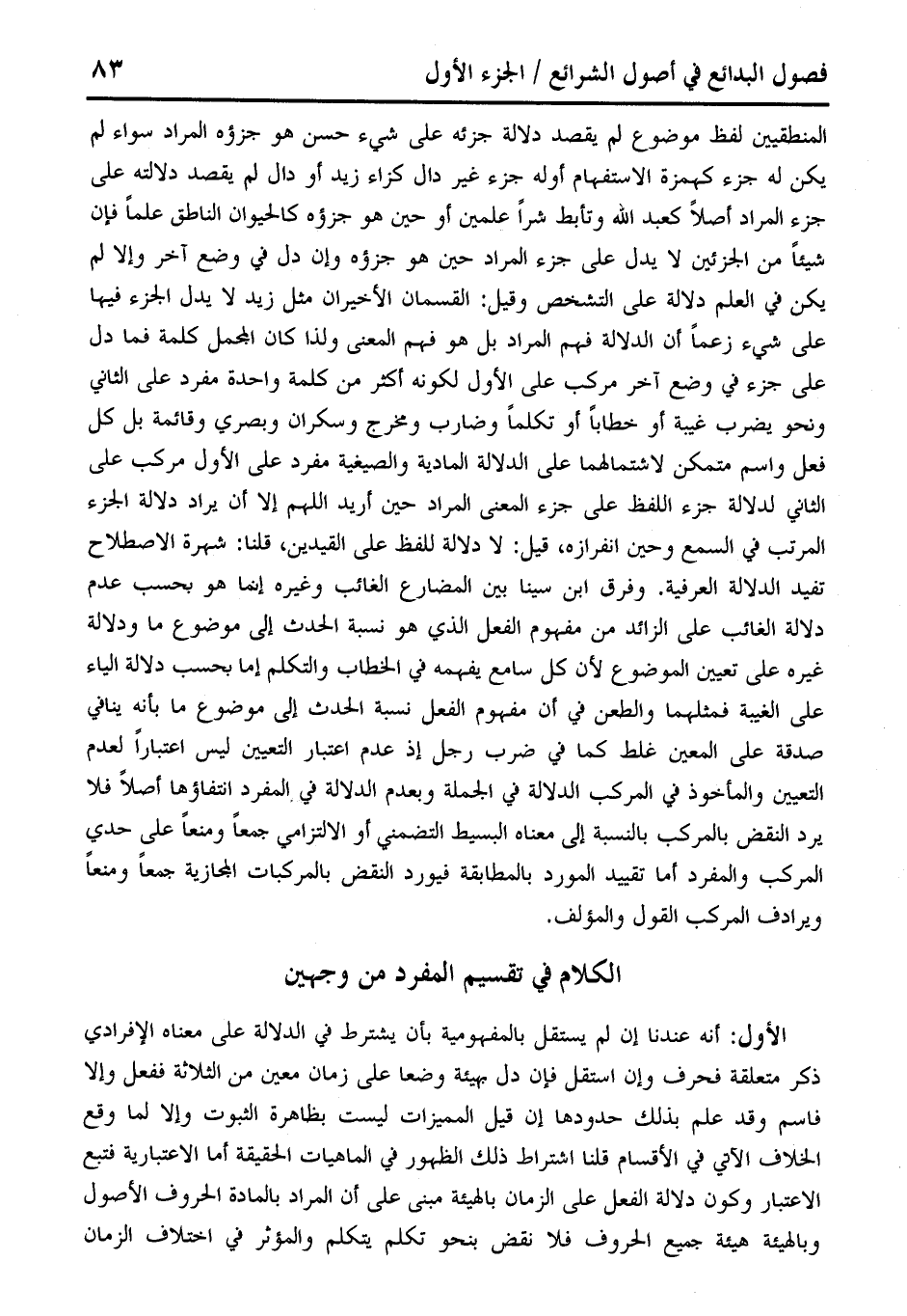 الكلام في تقسيم المفرد من وجهين