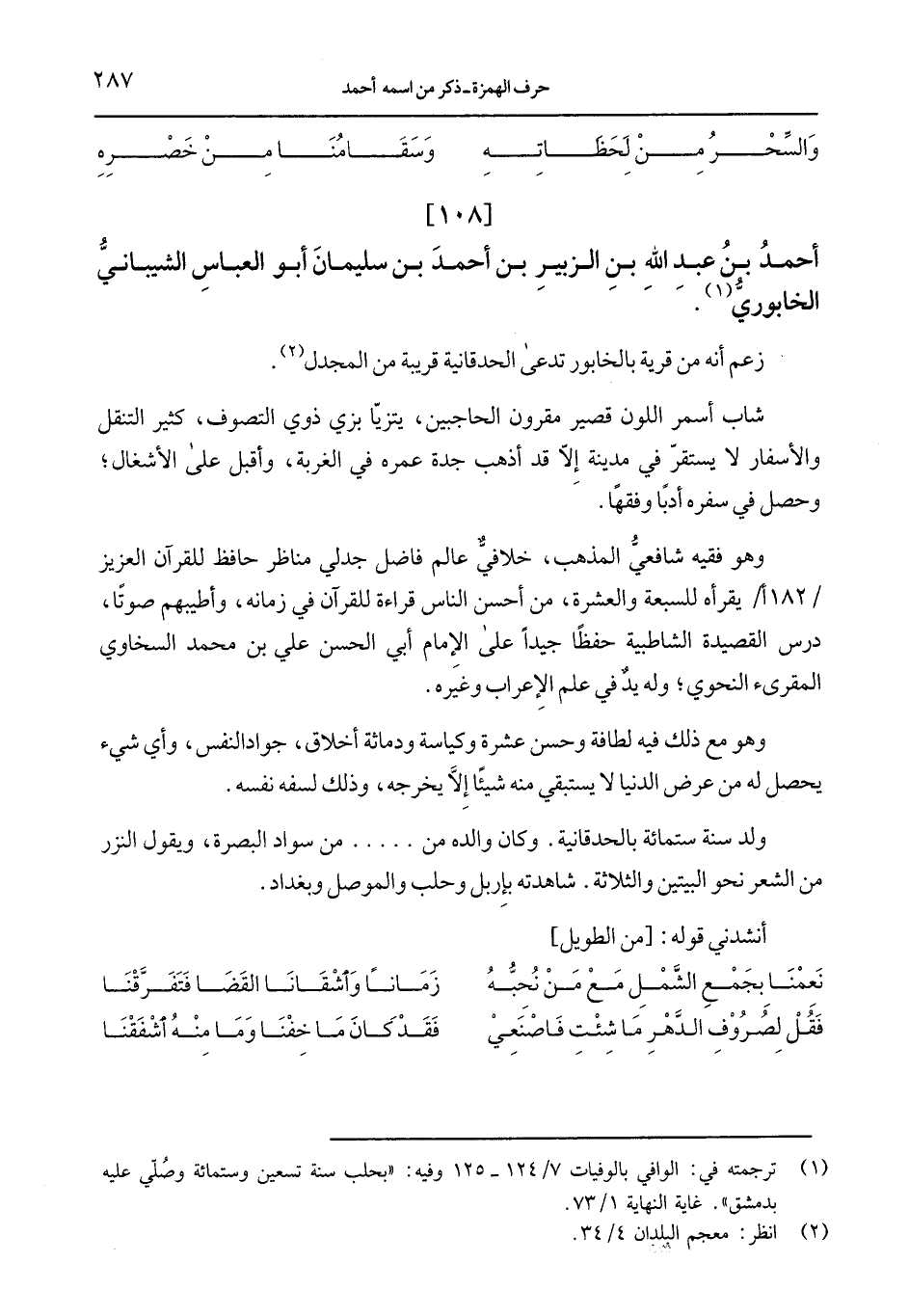 أحمد بن عبد الله بن الزبير بن أحمد بن سليمان أبو العباس الشيبانيُّ الخباوريُّ.