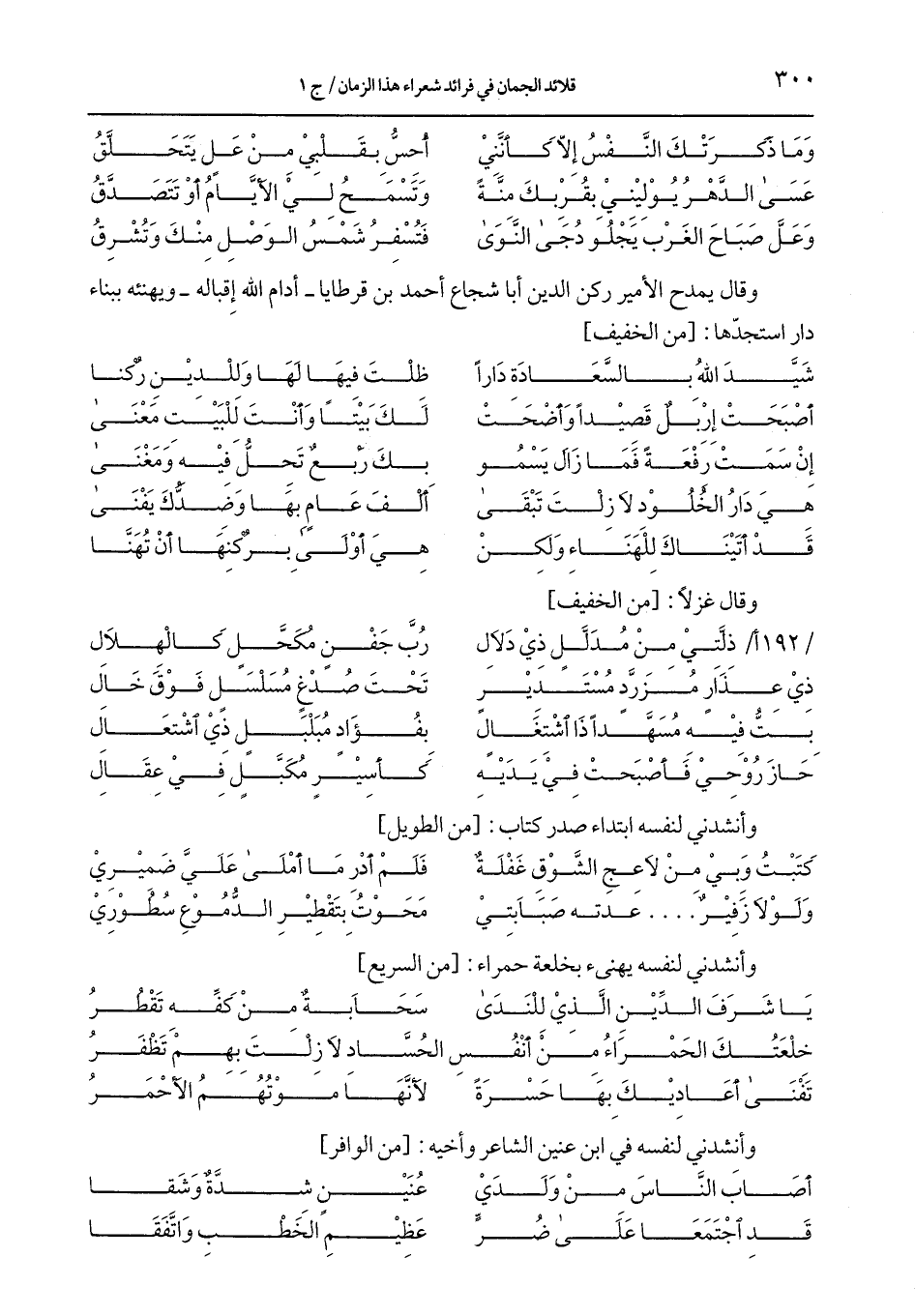 كتاب قلائد الجمان في فرائد شعراء هذا الزمان (اسم الجزء: 1)