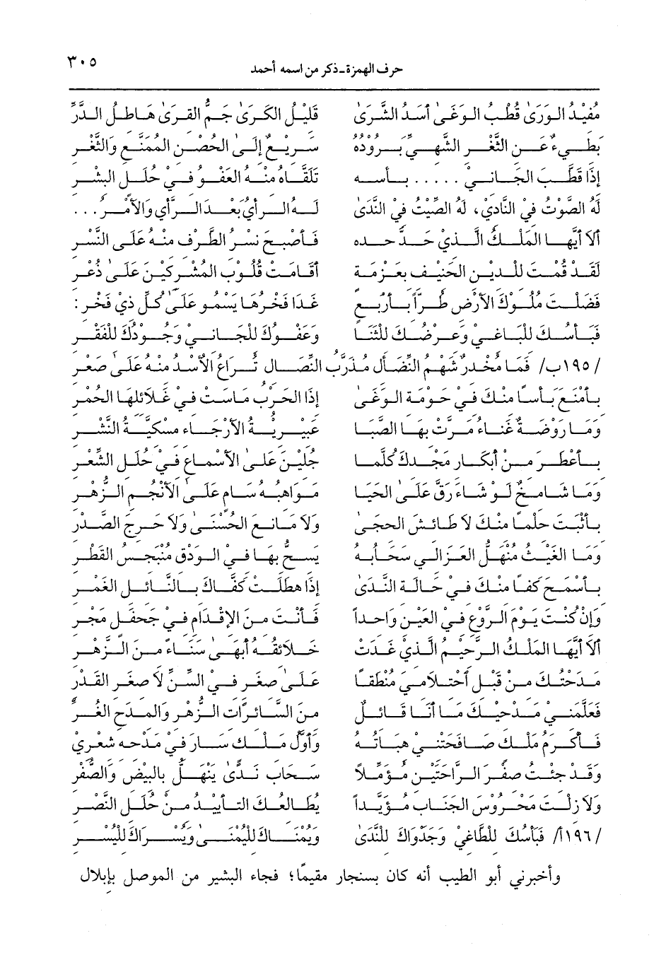 وأخبرني أبو الطيب أنه كان بسنجار مقيمًا؛ فجاء البشير من الموصل بإبلال