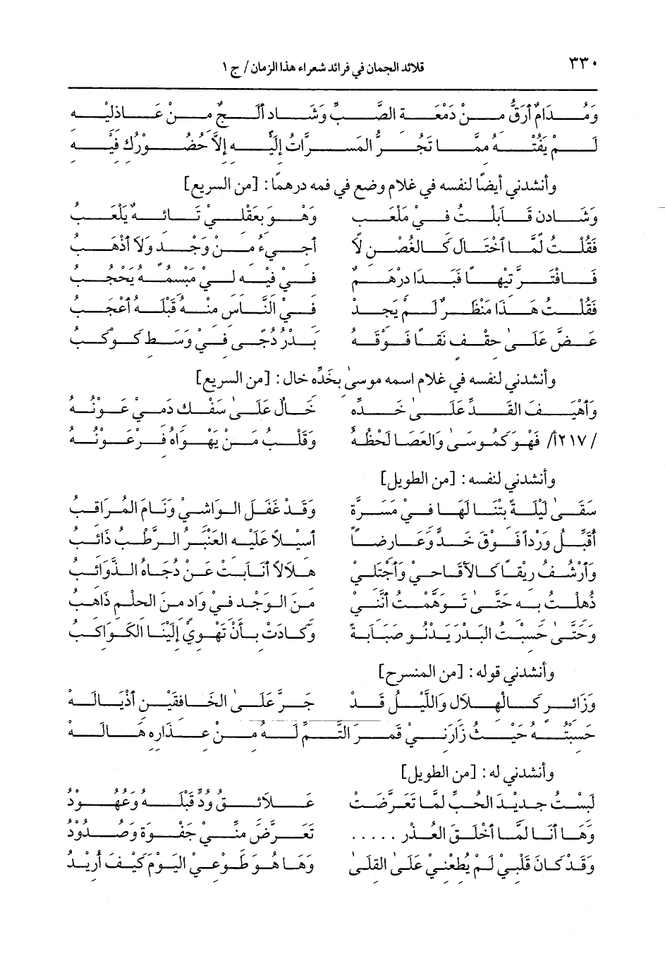 كتاب قلائد الجمان في فرائد شعراء هذا الزمان (اسم الجزء: 1)