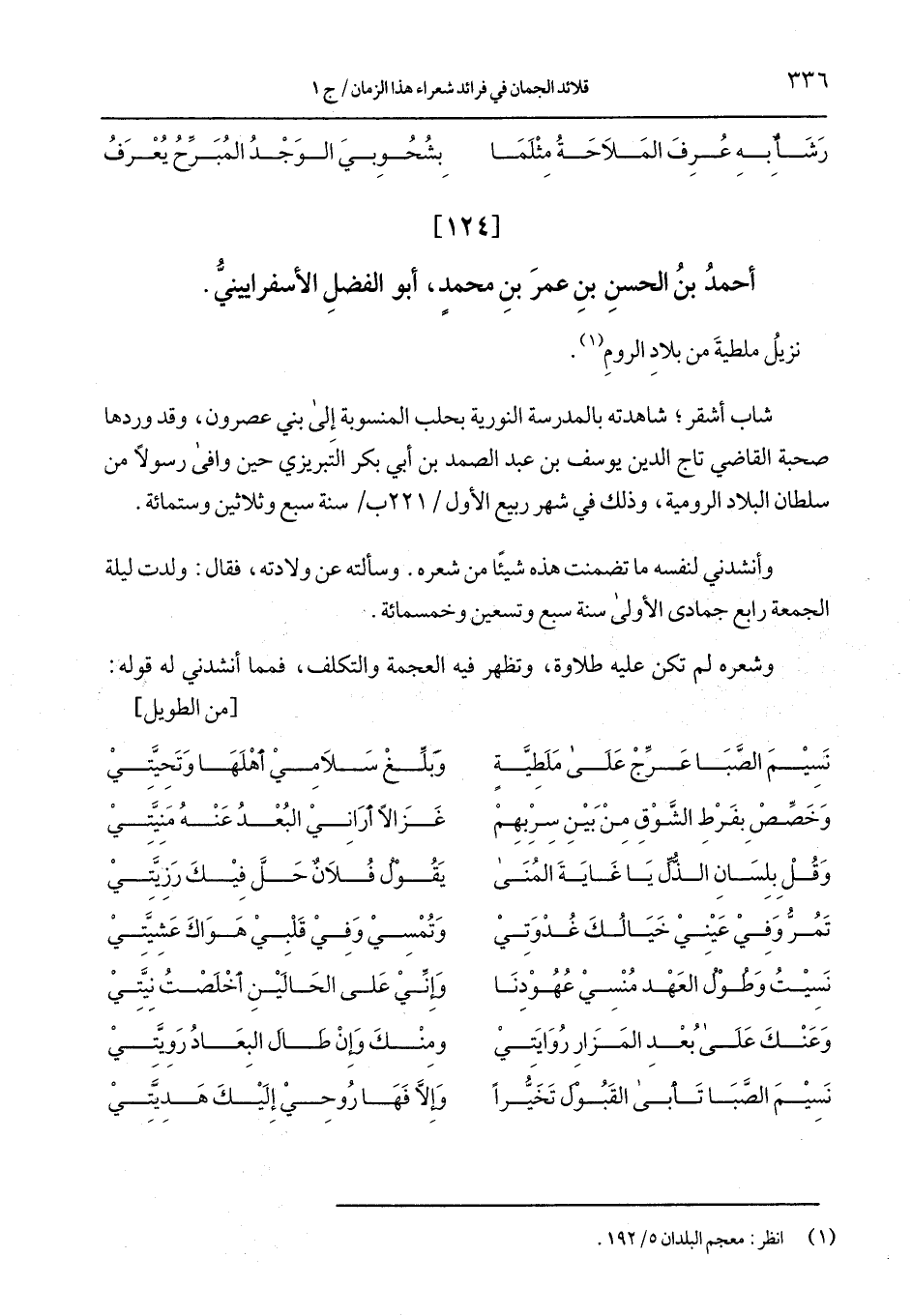 نسيم الصَّبا عرِّج على ملطَّية ... وبلِّع سلامي أهلها وتحيَّتي