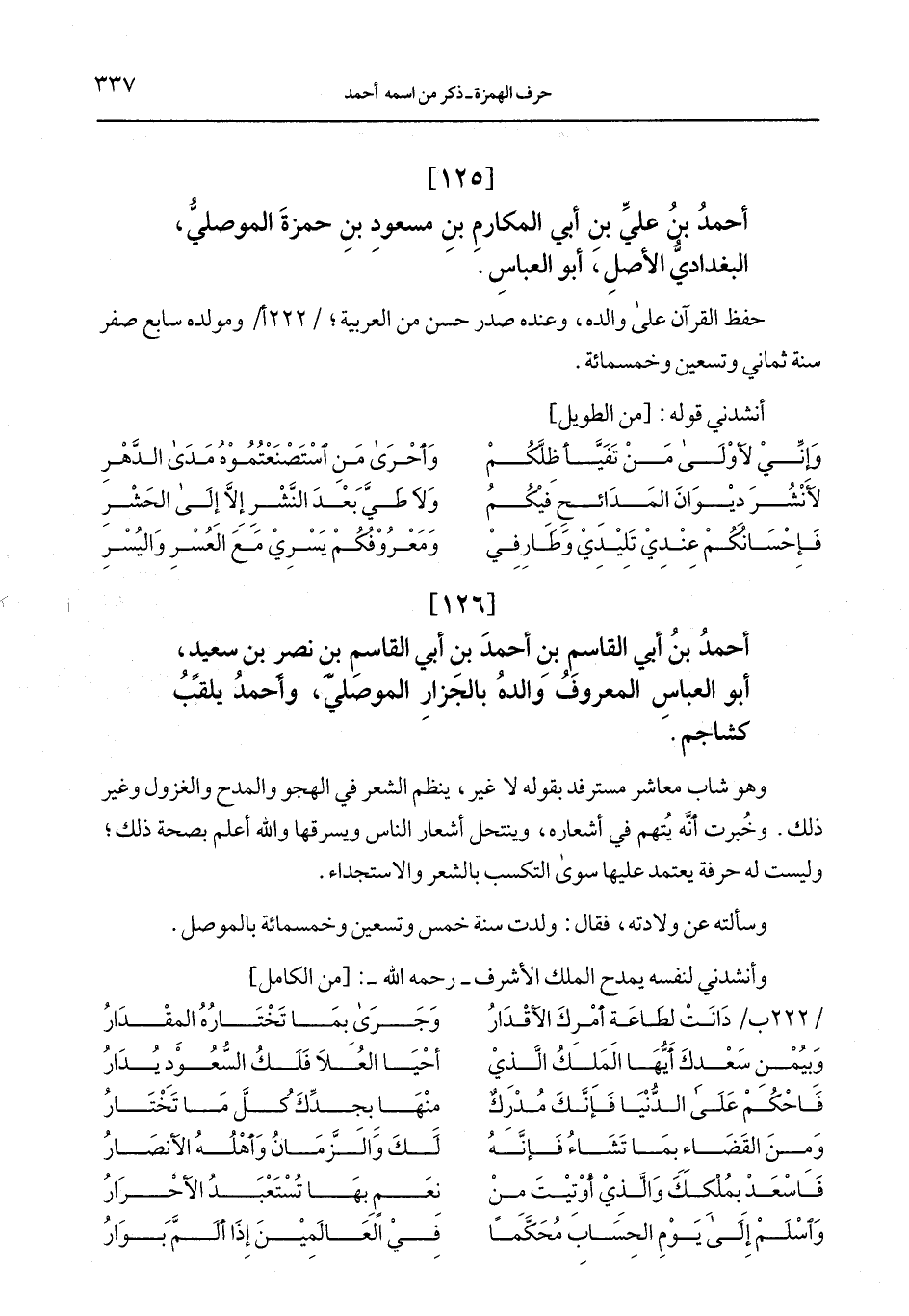 أحمد بن أبي القاسم بن أحمد بن أبي القاسم بن نصر بن سعيد، أبو العباس المعروف والده بالجزار الموصلي، وأحمد يلقب كشاجم.