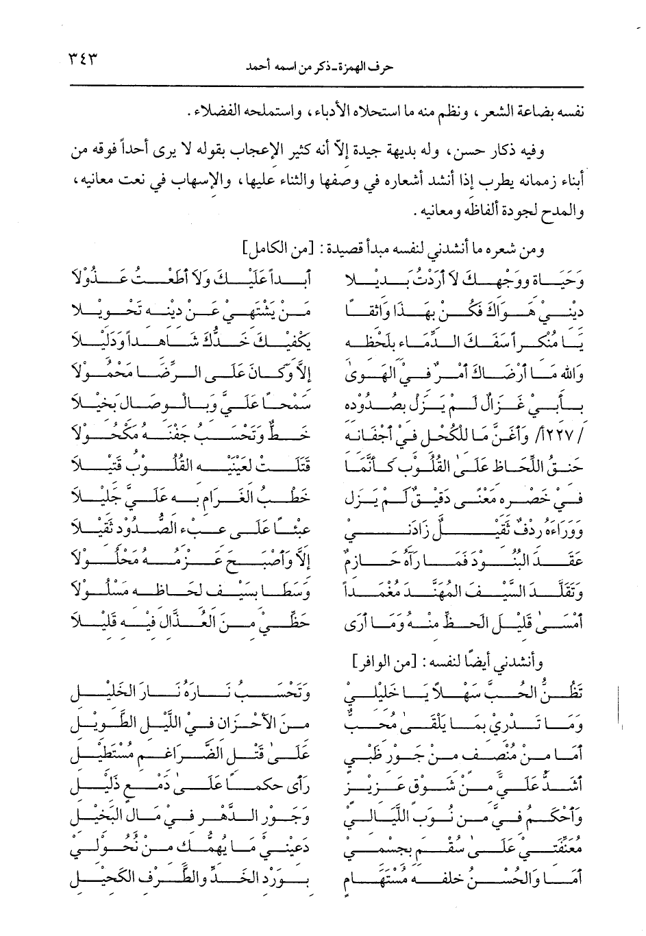 ومن شعره ما أنشدني لنفسه مبدأ قصيدة: [من الكامل]