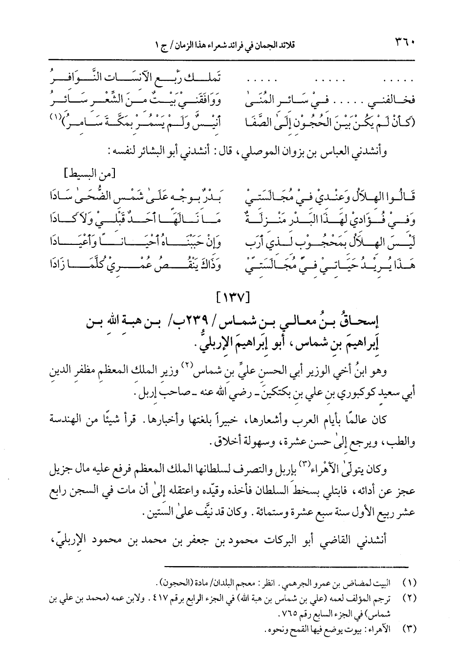 أنشدني القاضي أبو البركات محمود بن جعفر بن محمد بن محمود الإِربليّ،