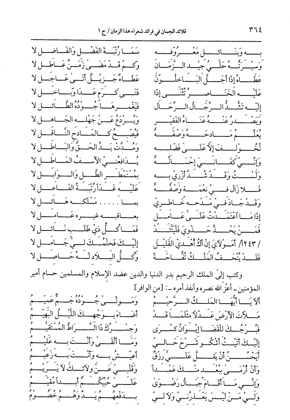 كتاب قلائد الجمان في فرائد شعراء هذا الزمان (اسم الجزء: 1)