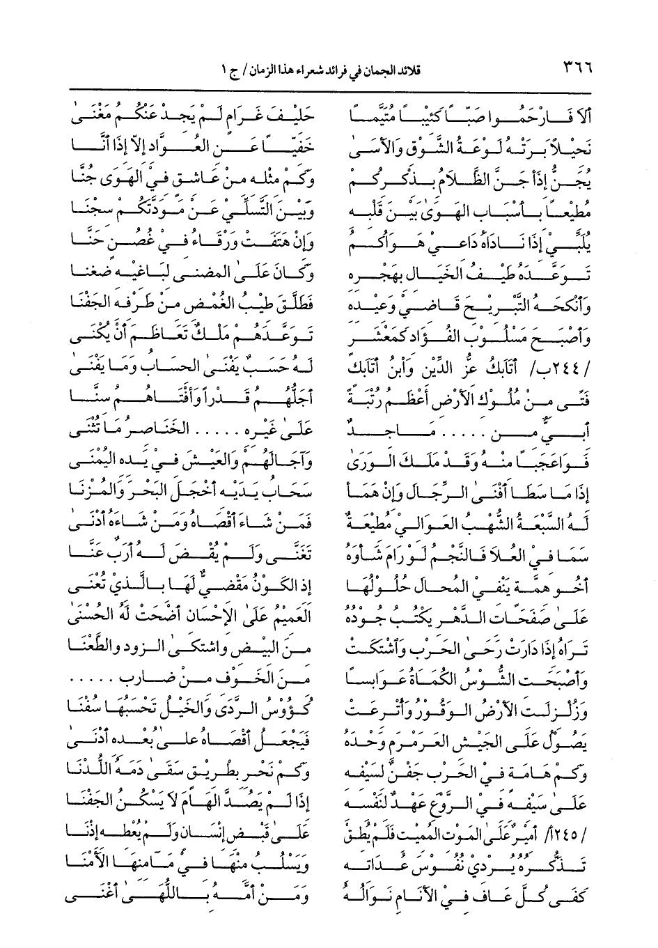 /244 ب/ أتابك عزُّ الدِّين وابن أتابك ... له حسبٌ يفنى الحساب وما يفنى