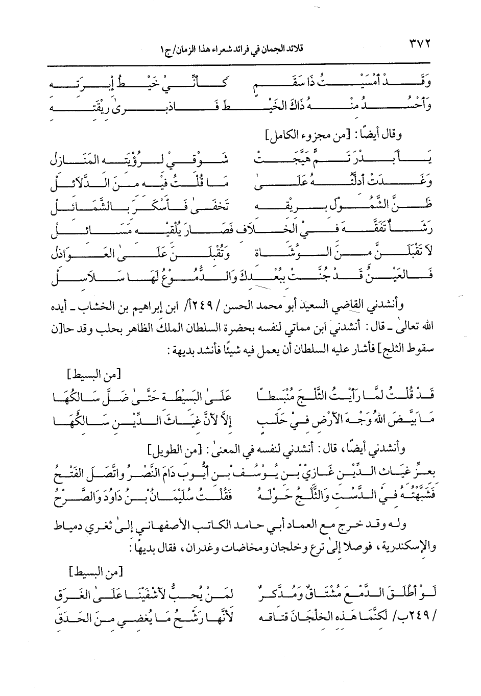 كتاب قلائد الجمان في فرائد شعراء هذا الزمان (اسم الجزء: 1)