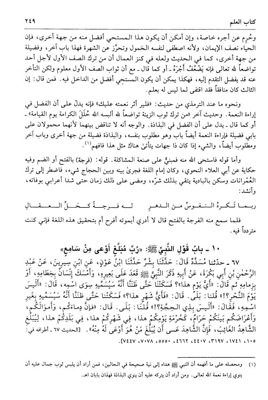 10 - باب قَوْلِ النَّبِىِّ - صلى الله عليه وسلم - «رُبَّ مُبَلَّغٍ أَوْعَى مِنْ سَامِعٍ»
