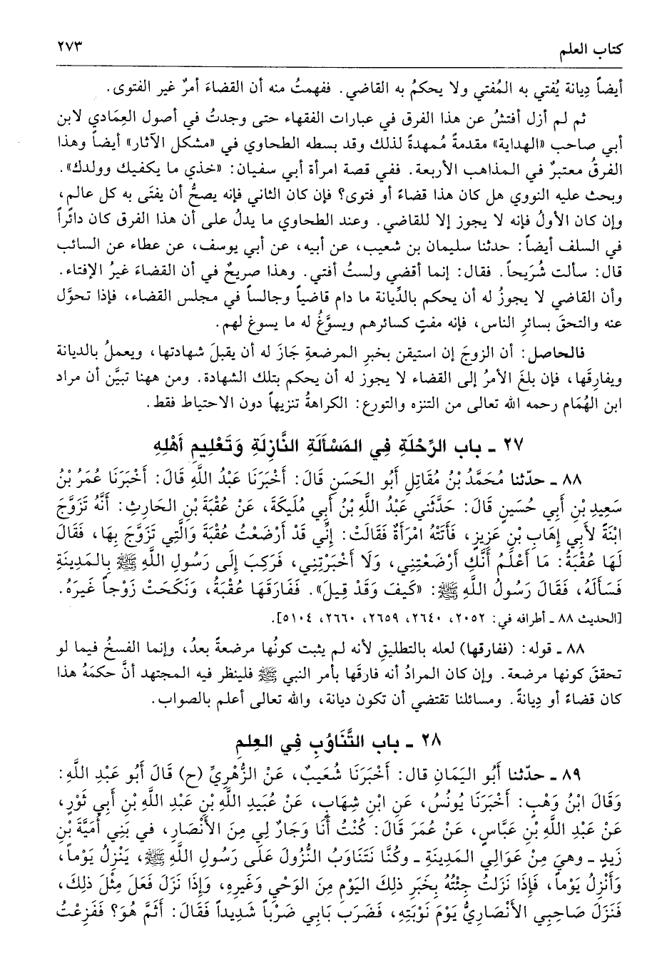 27 - باب الرِّحْلَةِ فِى الْمَسْأَلَةِ النَّازِلَةِ وَتَعْلِيمِ أَهْلِهِ