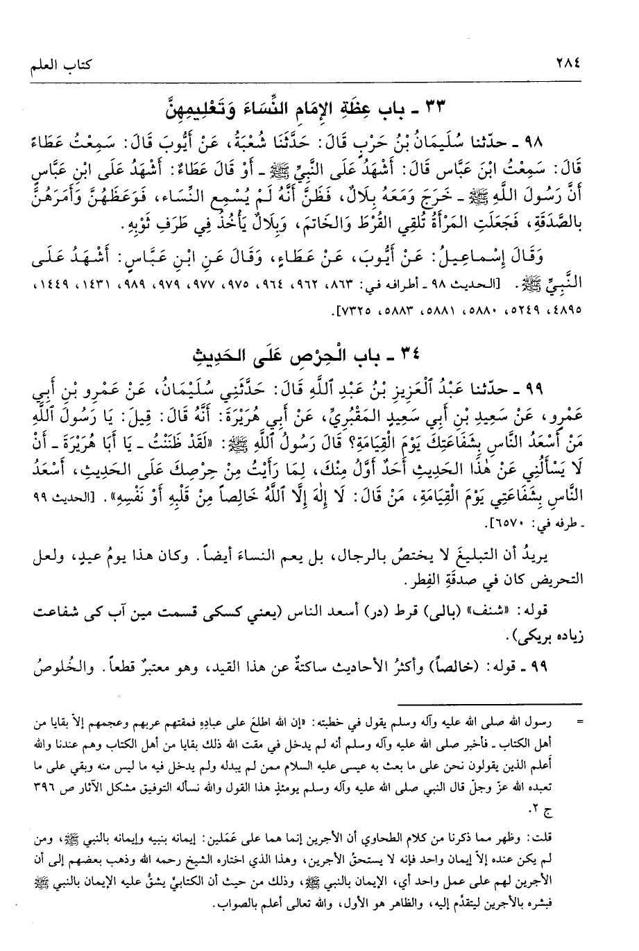 33 - باب عِظَةِ الإِمَامِ النِّسَاءَ وَتَعْلِيمِهِنَّ